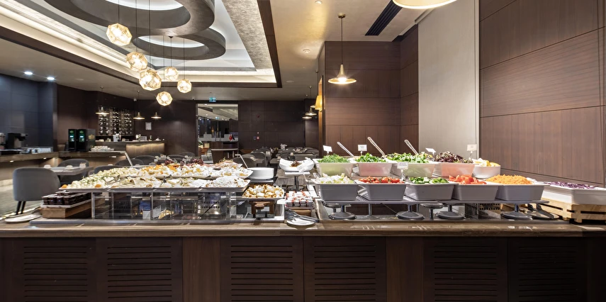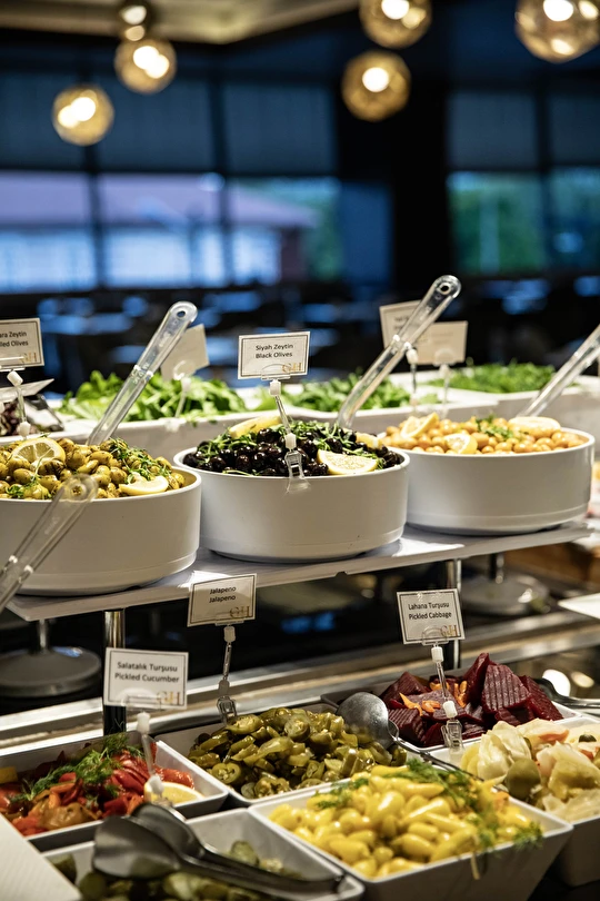 Grand Harilton Otel’de taze ve organik malzemelerle hazırlanan geniş kahvaltı büfeleri, gün boyu uzanan gurme lezzetler ve özenle seçilmiş akşam menüleri misafirleri lezzet yolculuğuna çıkarıyor.