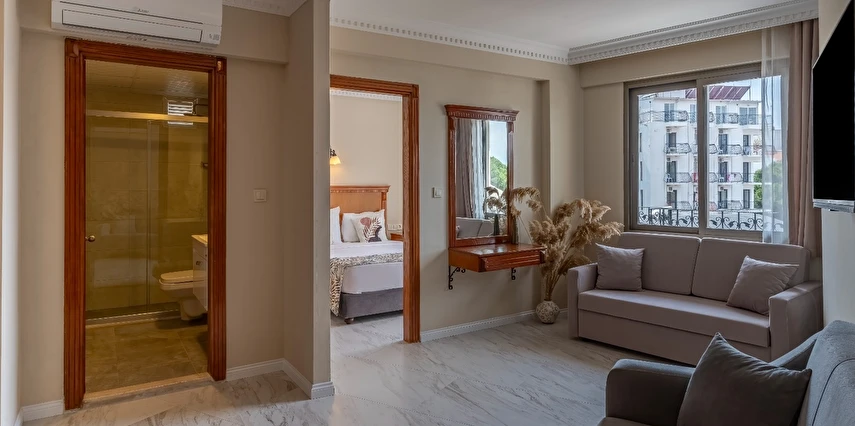 Suit oda düzeniyle ev konforunu ön plana çıkaran tesis, gününü dışarıda geçiren misafirler için huzurlu bir dinlenme ortamı sunar. Sade ve düzenli yapısıyla öne çıkan Rosy Suites Hotel, bağımsız ve rahat konaklama tercih eden misafirler için dengeli bir seçenektir.