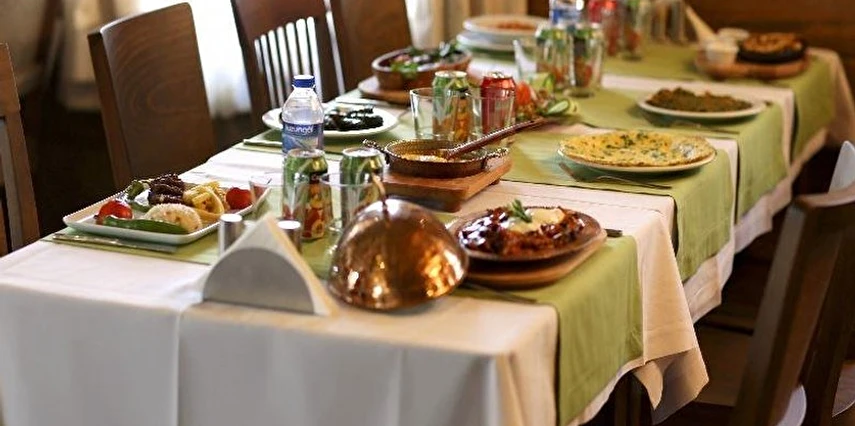 Tesisin geniş ve şık restaurant bölümünde her sabah zengin bir açık büfe kahvaltı servis edilirken, yöresel lezzetlerle zenginleştirilmiş menüler ile öğle ve akşam yemekleri de konukların beğenisine sunulur.