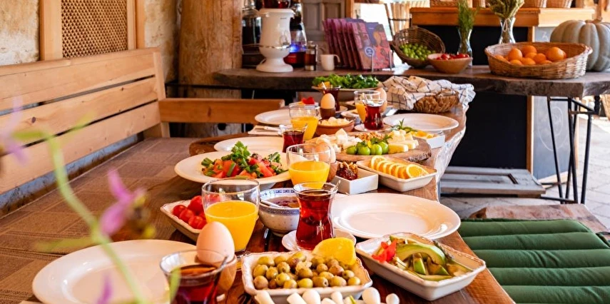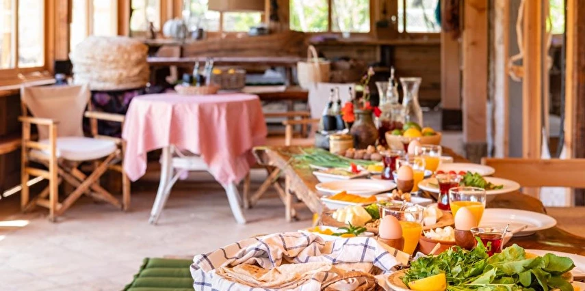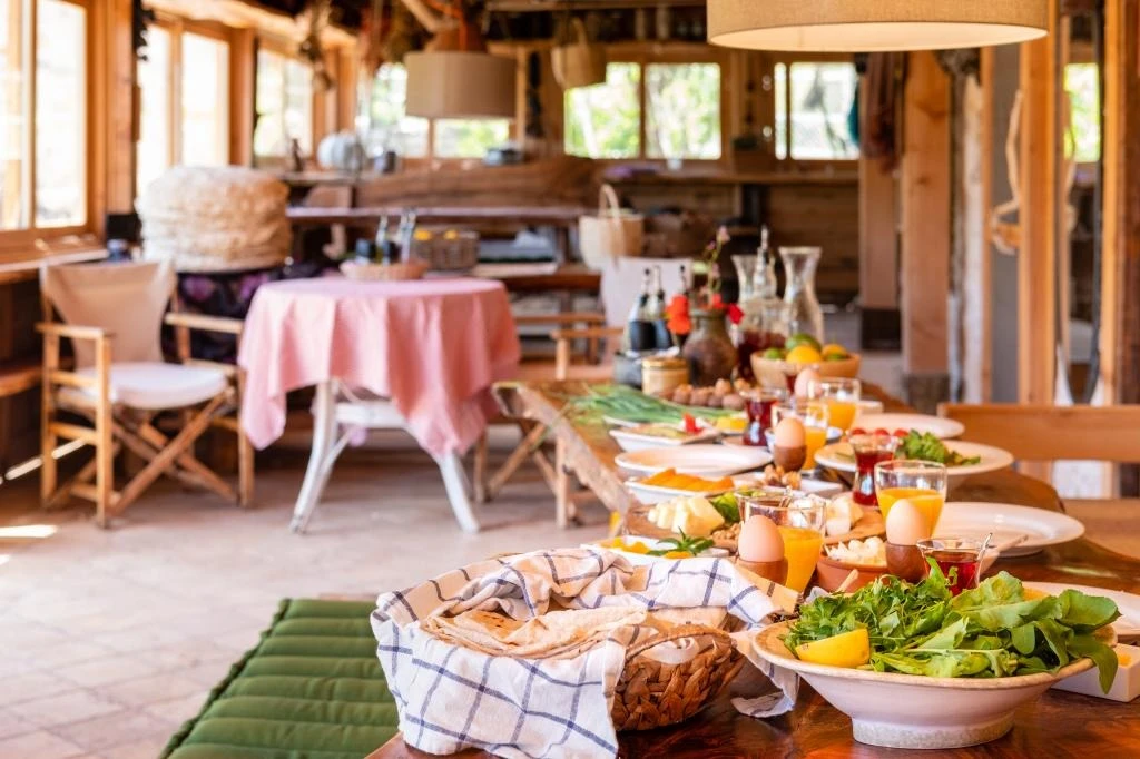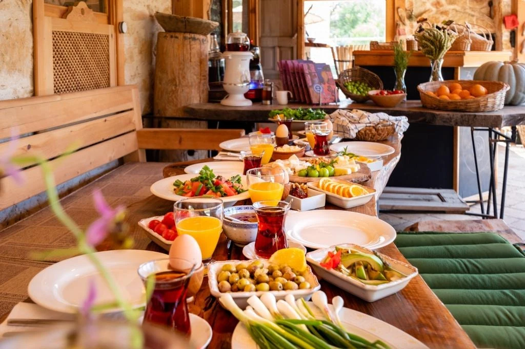 Araç seslerinden uzak 8 odalı konukevimizde, sabah kahvaltısı ve akşam yemeklerini bahçemizden topladığımız taze ürünlerle hazırlıyoruz. Domatesi, biberi, yumurtayı, zeytini dalından sofraya taşıyor; misafirlerimize sade ve sağlıklı bir deneyim sunuyoruz.
