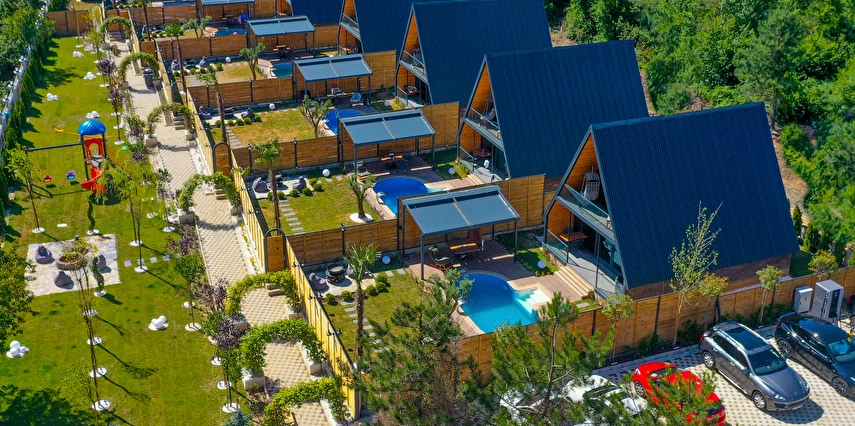 Daha Fazla Göster7Sense Nature Resort Spa Dinlenme, Huzur ve Sessizlik Doğayla iç içe, huzurlu ve samimi bir tatil deneyimi arıyorsanız, Aile konaklamaları için uygun olan 7 Sense Nature Resort tam size göre ahşap dokuları, minimalist tasarımları ve uyumlu yapılarıyla modern yaşamın karmaşasından uzaklaşmak isteyenler için ideal bir kaçış sunuyoruz . Her mevsim farklı bir güzellik sunarak unutulmaz anılar biriktirmenize olanak tanımayı amaçlıyoruz. 7.Sense Nature Resort, Sapanca'nın Hacı Mercan köyünde 4.200 metre karelik bir arazi üzerine 7 Adet herbiri 250 m2 olan bungolovlardan oluşmaktadır.Tesisin kendi bünyesinde Loby ve Resepsiyon bölümü de bulunmaktadır . Sapanca merkeze 3 km, Sapanca Gölüne 2 km uzaklıkta yer almaktadır. Yemyeşil bir çam ormanının ortasında gizlenmiş, bölgenin en sessiz ve doğayla başbaşa cennetten bir köşesidir. Herbir bungalov kendine özel geniş ısıtmalı bir havuza, yoga, meditasyon, sağlıklı yaşam uygulamaları ve açık hava yemek için çeşitli açık teraslara, size özel şömine ve ateş çukuruna sahiptir. Yine herbir bungalov asma katta 1 yatak odası giriş katında diğer yatak odası 1 salon açık mutfak ve 1 banyodan oluşmaktadır. Konaklamanın keyfine varacağınız bir tatile hazır olun.