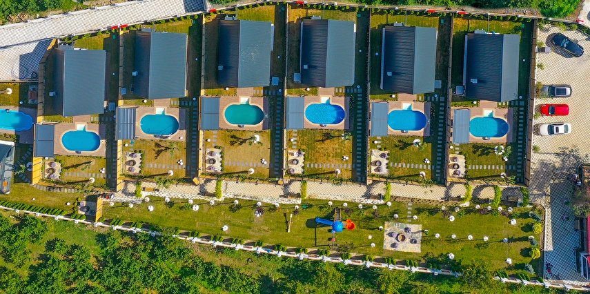 12 Ay açık olan tesisimizde her Bungalov'un kendine özel ısıtmalı yüzme havuzu bulunmaktadır