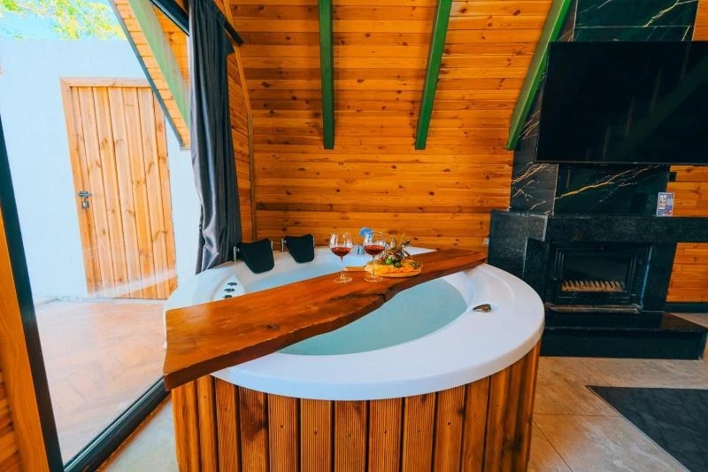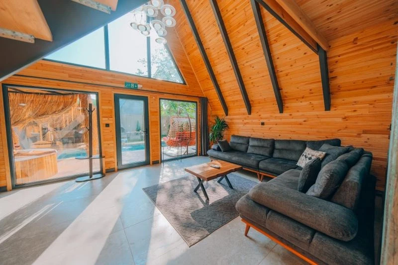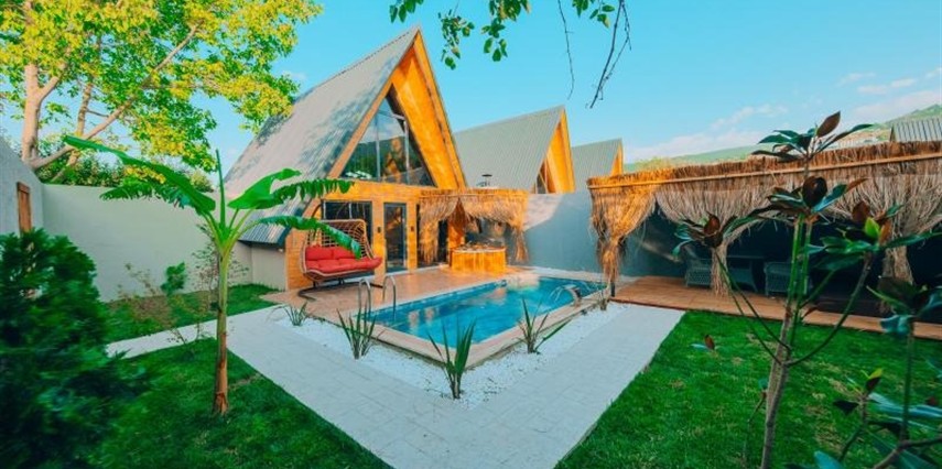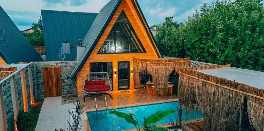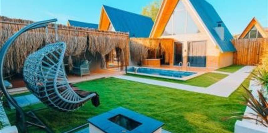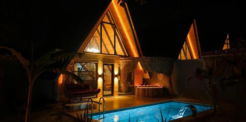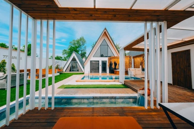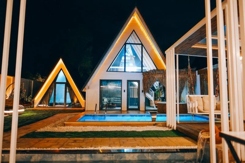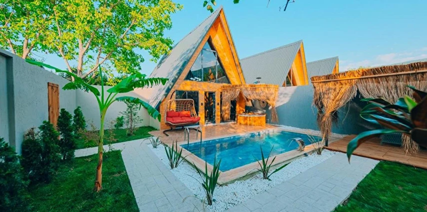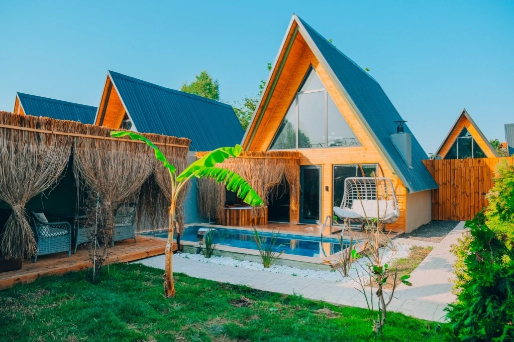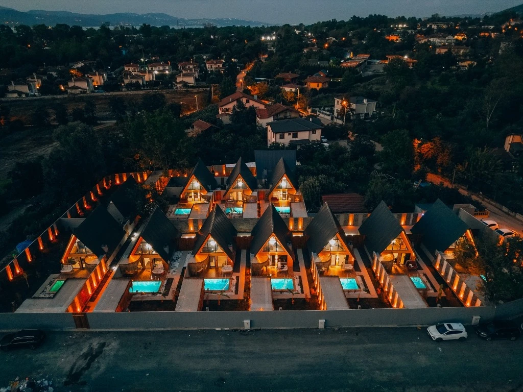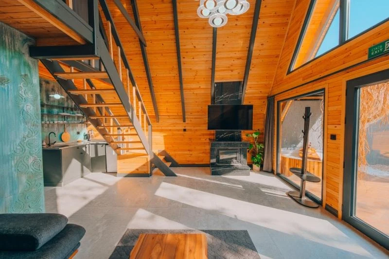 Ahşaptan yapılmış üçgen yapılı bungalovlarımız, modern yaşamın tüm olanaklarıyla donatılmış olup, sıcak ve soğuk havuz, jakuzi, internet ve sabah kahvaltısı gibi birçok hizmeti içermektedir.