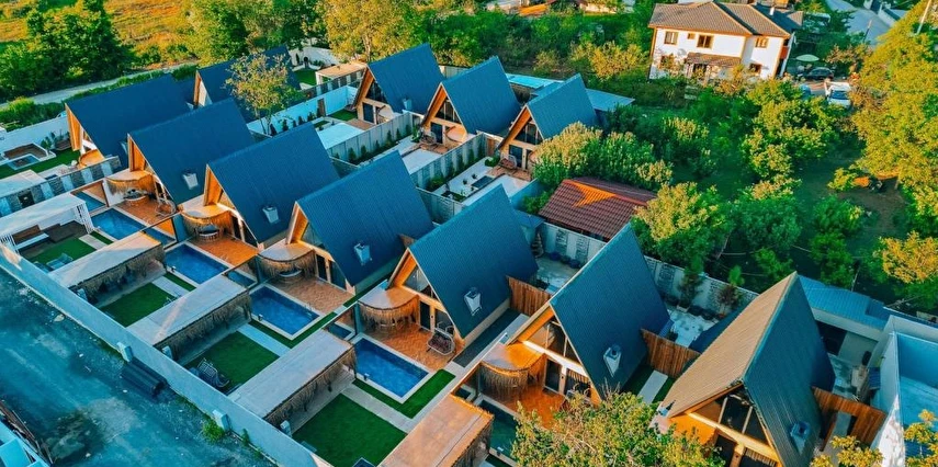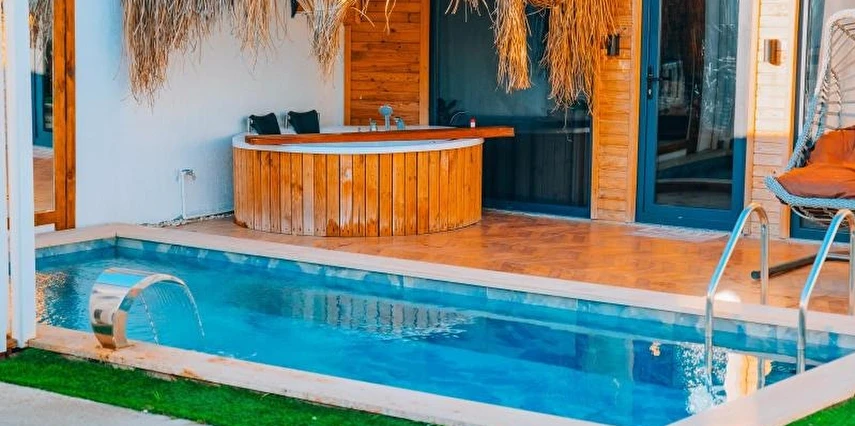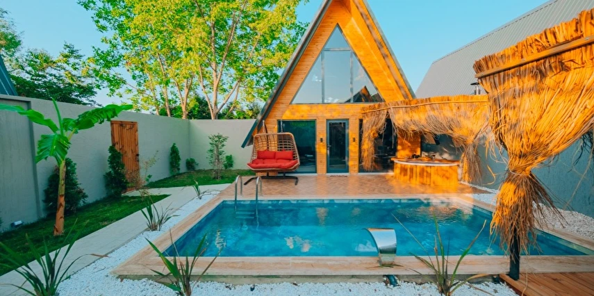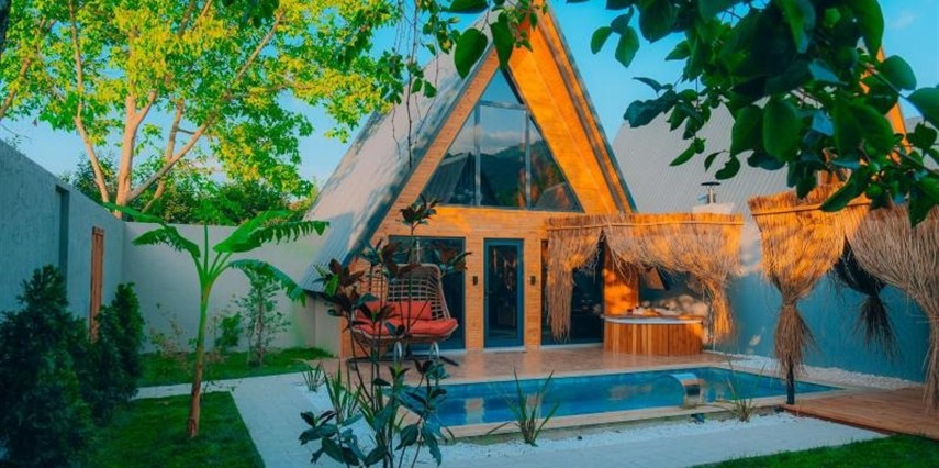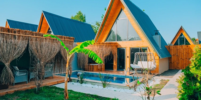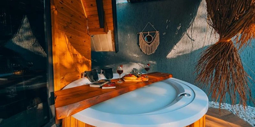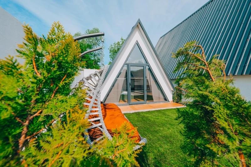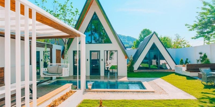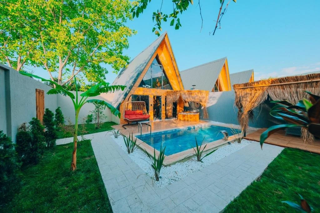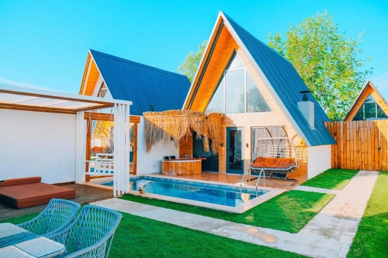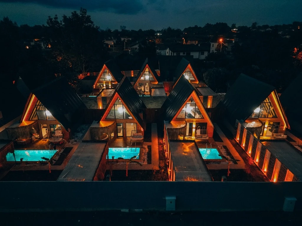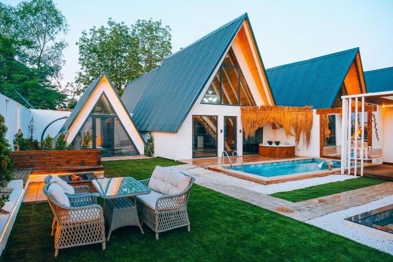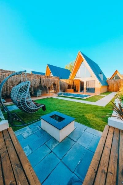 Ahşaptan yapılmış üçgen yapılı bungalovlarımız, modern yaşamın tüm olanaklarıyla donatılmış olup, sıcak ve soğuk havuz, jakuzi, internet ve sabah kahvaltısı gibi birçok hizmeti içermektedir.
