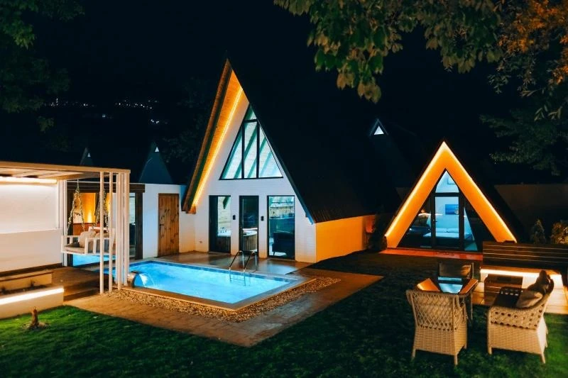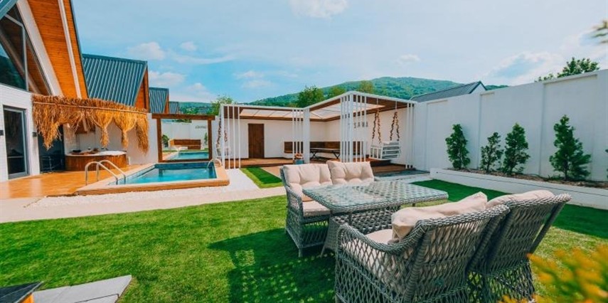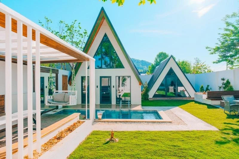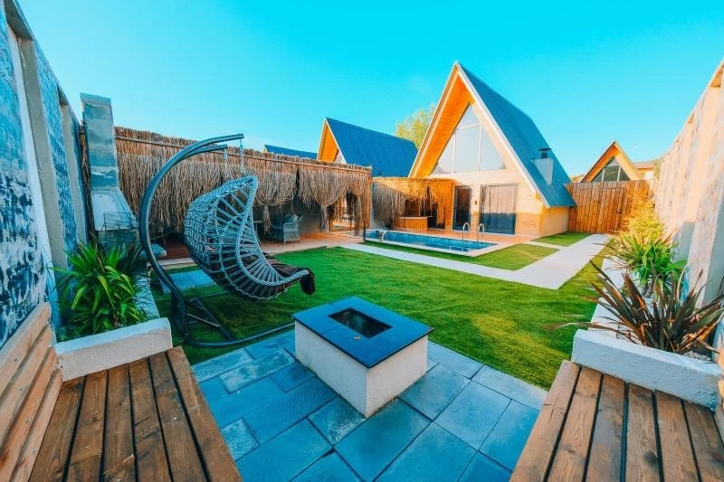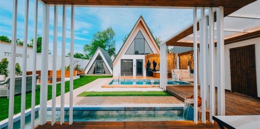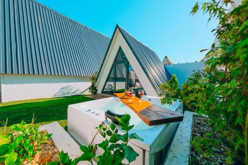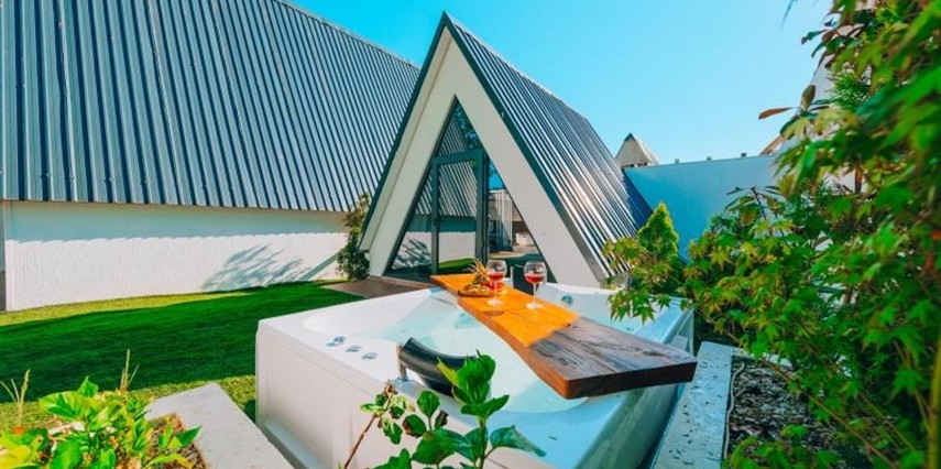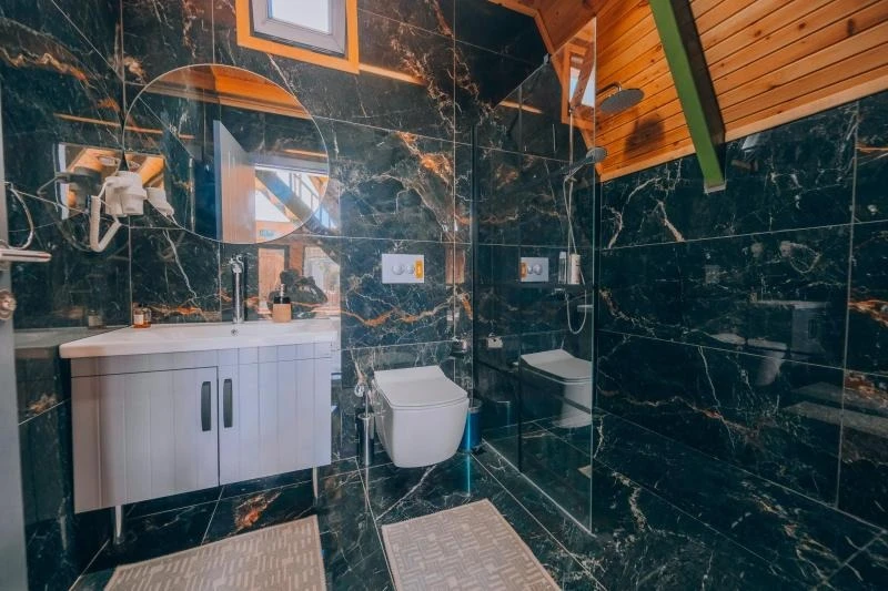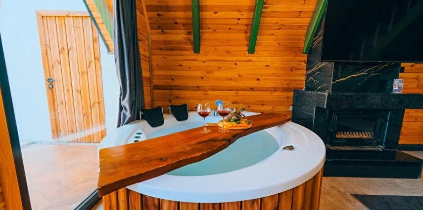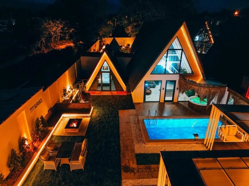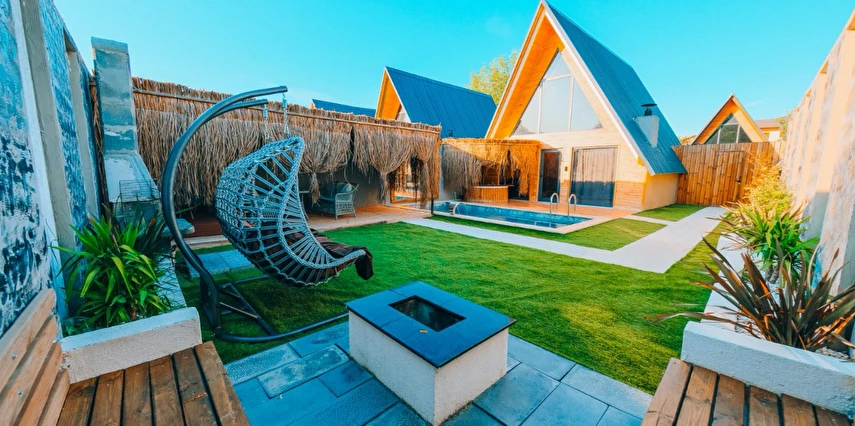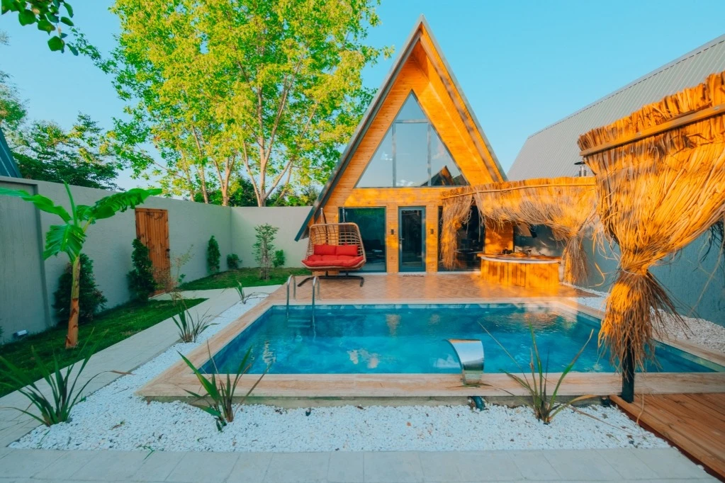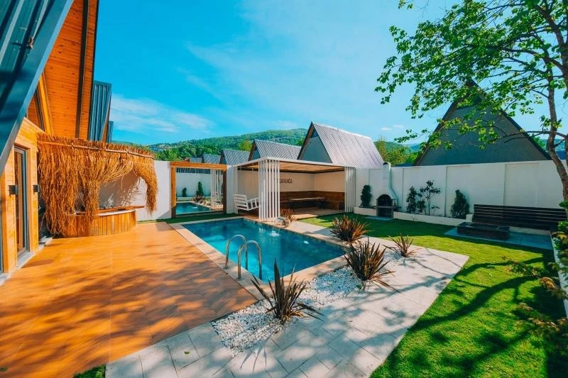 Ahşaptan yapılmış üçgen yapılı bungalovlarımız, modern yaşamın tüm olanaklarıyla donatılmış olup, sıcak ve soğuk havuz, jakuzi, internet ve sabah kahvaltısı gibi birçok hizmeti içermektedir.