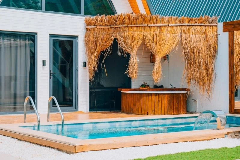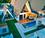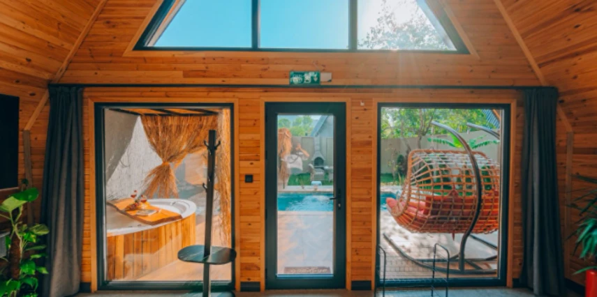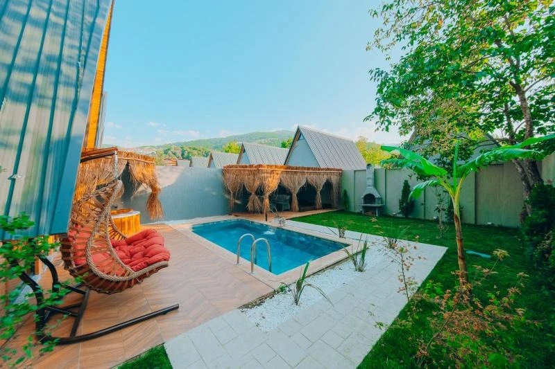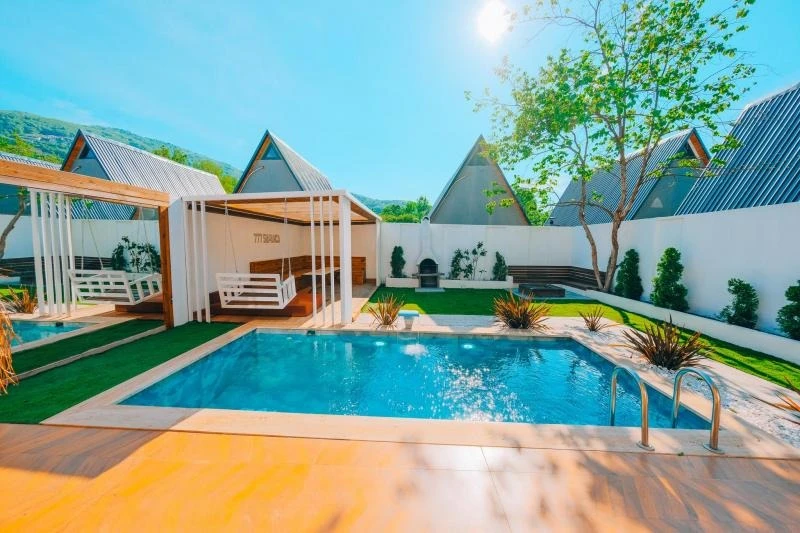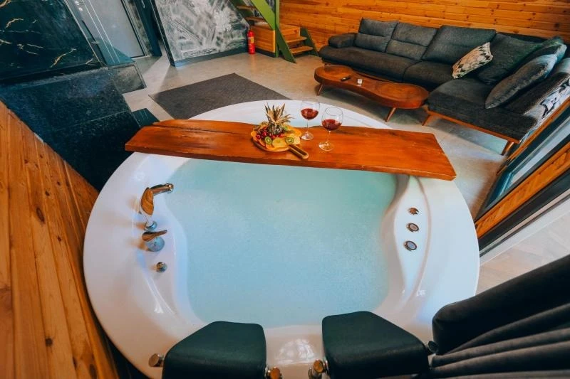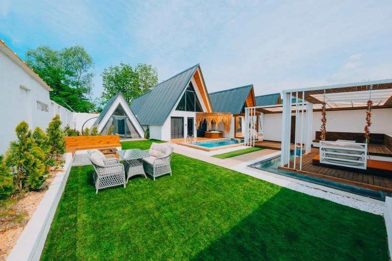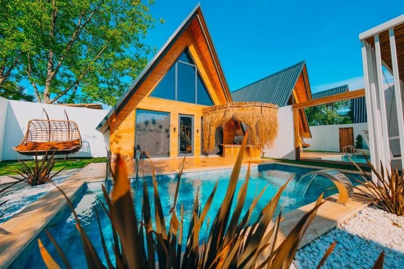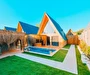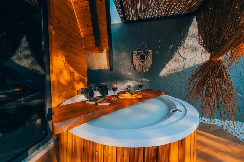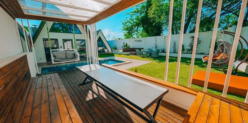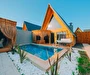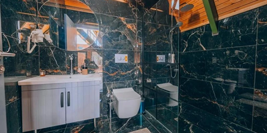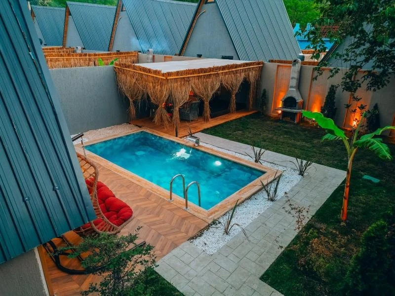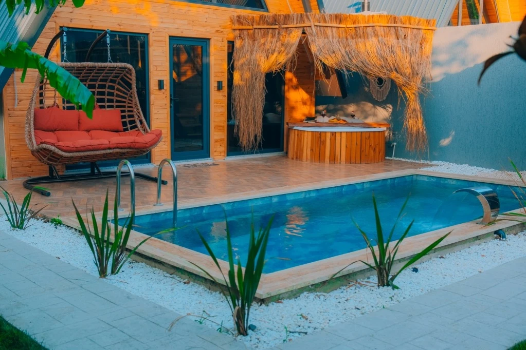 Ahşaptan yapılmış üçgen yapılı bungalovlarımız, modern yaşamın tüm olanaklarıyla donatılmış olup, sıcak ve soğuk havuz, jakuzi, internet ve sabah kahvaltısı gibi birçok hizmeti içermektedir.