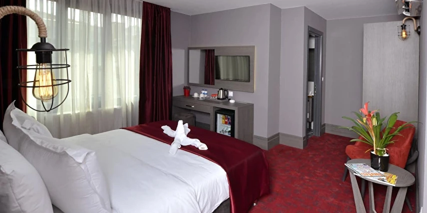 Daha Fazla GösterA11 Hotel Cadde, Anadolu Yakası’nın hem iş hem de turistik anlamda merkezi noktalarından Kadıköy’ün Göztepe mevkiinde konumlanıyor. Modern olanaklarla tasarlanmış odaları, güler yüzlü personelleri ve Bağdat Caddesi’ne yakın mesafesi ile misafirlerine keyifli bir tatil vadediyor. Tesisin sunduğu hizmetler arasında; kablosuz internet bağlantısı, çamaşırhane, kuru temizleme, 24 saat resepsiyon, ütü servisi ve günlük temizlik gibi olanaklar mevcut. Anadolu Yakası’nın merkezi noktalarından Kadıköy’ün Göztepe mevkiinde bulunan A11 Hotel Cadde, Bağdat Caddesi’ne yakın konumda yer alıyor. Modern ve zarif bir şekilde dekore edilmiş odalarında misafirlerin ihtiyaç duyabileceği pek çok olanak mevcut. Modern mimari ve ev sıcaklığında donatılmış odaları, güler yüzlü personelleri ve elverişli konumu ile hem iş hem de turistik amaçlı konaklamalara hitap ediyor. Misafirlerin konforuna yönelik sunulan hizmetler arasında kablosuz internet bağlantısı, çamaşırhane, kuru temizleme, 24 saat resepsiyon, ütü servisi ve günlük temizlik gibi olanaklar mevcut. Anadolu Yakası'nın merkezlerinden Göztepe’de bulunan tesis, Kadıköy ve Bağdat Caddesi’nin yanıbaşında konumlanıyor. Modern ve şık dekorasyonlu odaları ile misafirlerini ağırlayan tesis, hem iş hem de turistik amaçlı konaklamalara hitap ediyor.