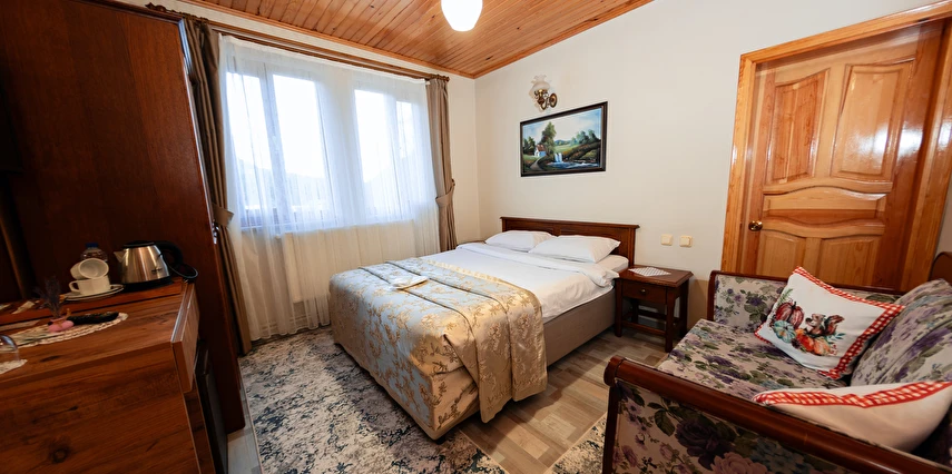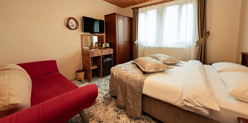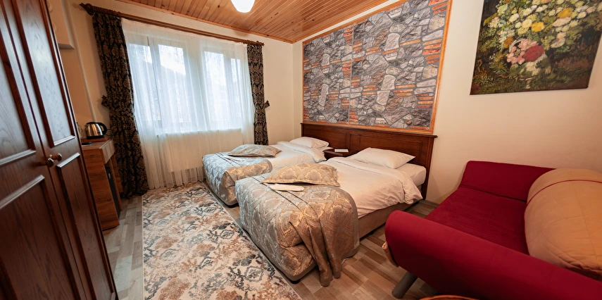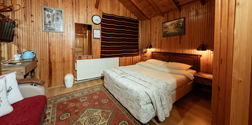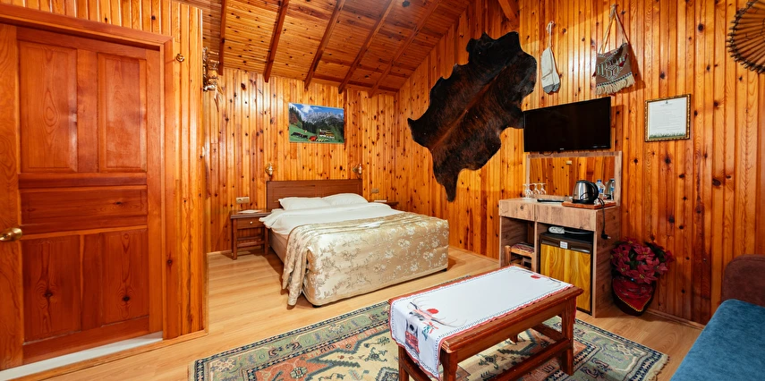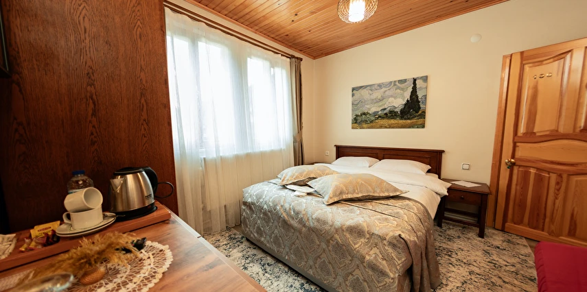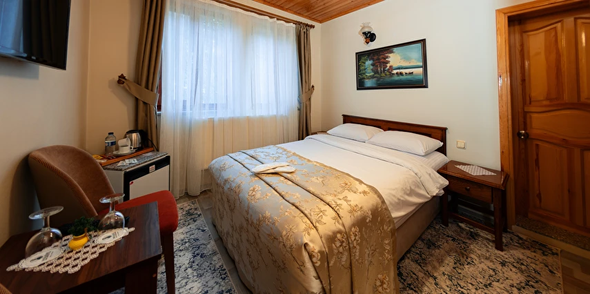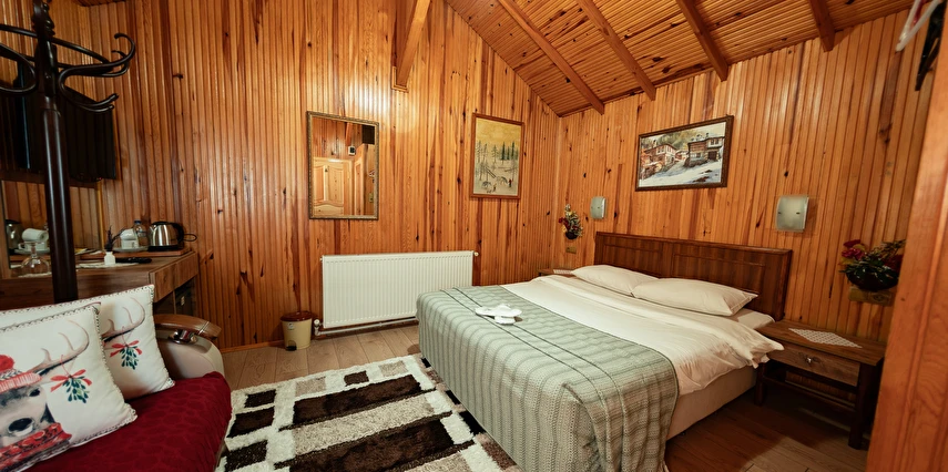 Daha Fazla GösterDoğayla iç içe konumu ve ilgili personeli ile misafirler tarafından beğenilen Abant Doğa Köşkü Otel, ırmak kenarında yer alıyor ve huzurlu bir tatilin kapılarını aralıyor. Hem konforlu odaları hem bungalov odaları ile misafirlerini ağırlayan tesis, yemyeşil bahçesinde dinlenme olanakları da sunuyor. Abant Gölü Tabiat Parkı’na 9,2 km mesafede konumlanan Abant Doğa Köşkü Otel, Oda Kahvaltı konsepti ile hizmet veriyor. Misafirler sabahları geleneksel Türk kahvaltısı ile güne başlayabiliyor. Diğer öğünlerde ise tesisin a la carte restoranında Türk ve dünya mutfaklarından lezzetler servis ediliyor. Kendine ait otoparkı bulunan Abant Doğa Köşkü Otel’de bisiklet kiralama hizmeti sunuluyor. Dileyen misafirler bisiklet kiralayarak doğada bisiklet sürmenin ve çevreyi keşfetmenin tadını çıkarabilir. Keyifli vakit geçirmek isteyen misafirler dere kenarında yürüyüş yapabilir ya da tesisin bahçesinde yer alan dinlenme alanlarını değerlendirebilir. Tesiste çamaşırhane ve kuru temizleme bulunuyor. Muhteşem bir doğaya ev sahipliği yapan Abant’ta hizmet veren Abant Doğa Köşkü Otel, sıcak atmosferi ve yeşillikler arasındaki konumu ile huzurlu bir tatilin kapılarını aralıyor. Tesis Abant Gölü’ne 8 km uzaklıkta yer alıyor.