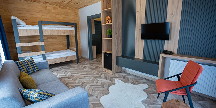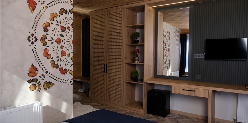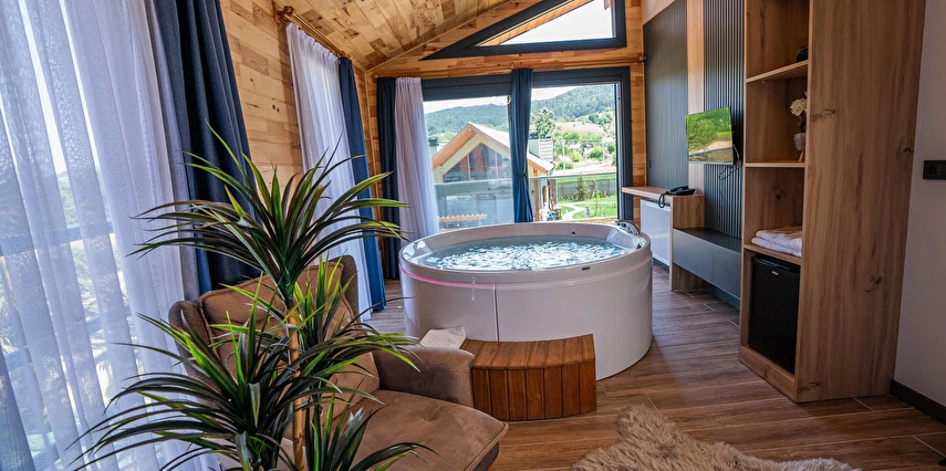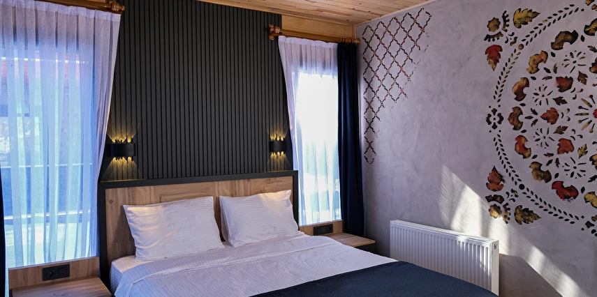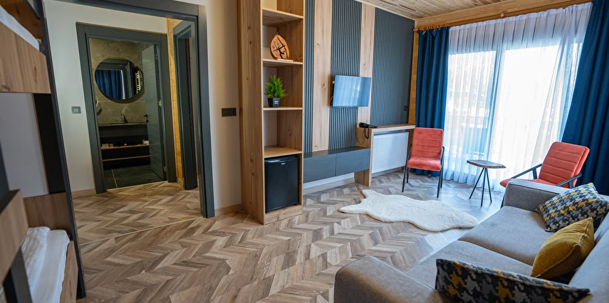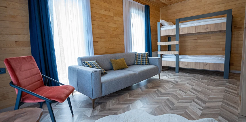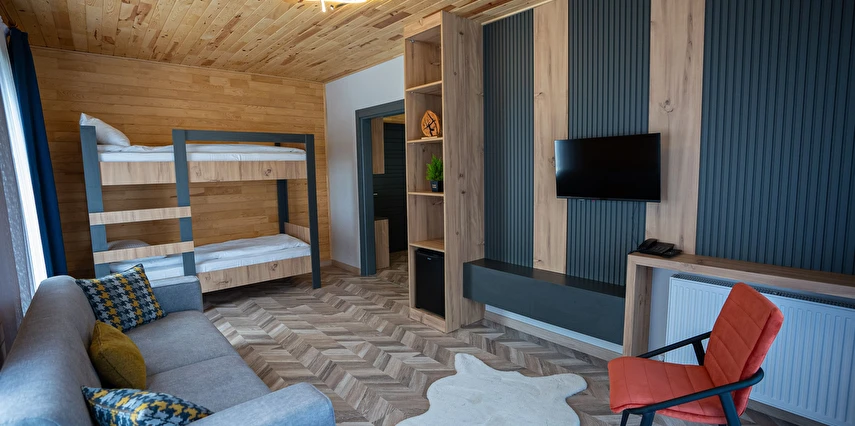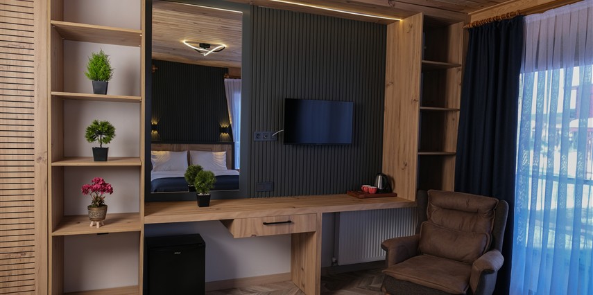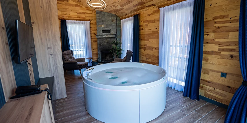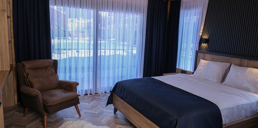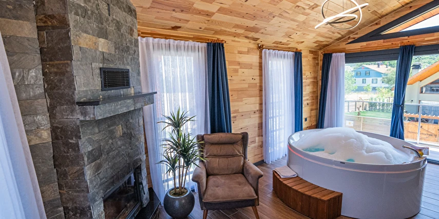*8 adet aile odası, 12 adet çift kişilik oda ,4 adet jakuzi ve şömineli odadan oluşmaktadır