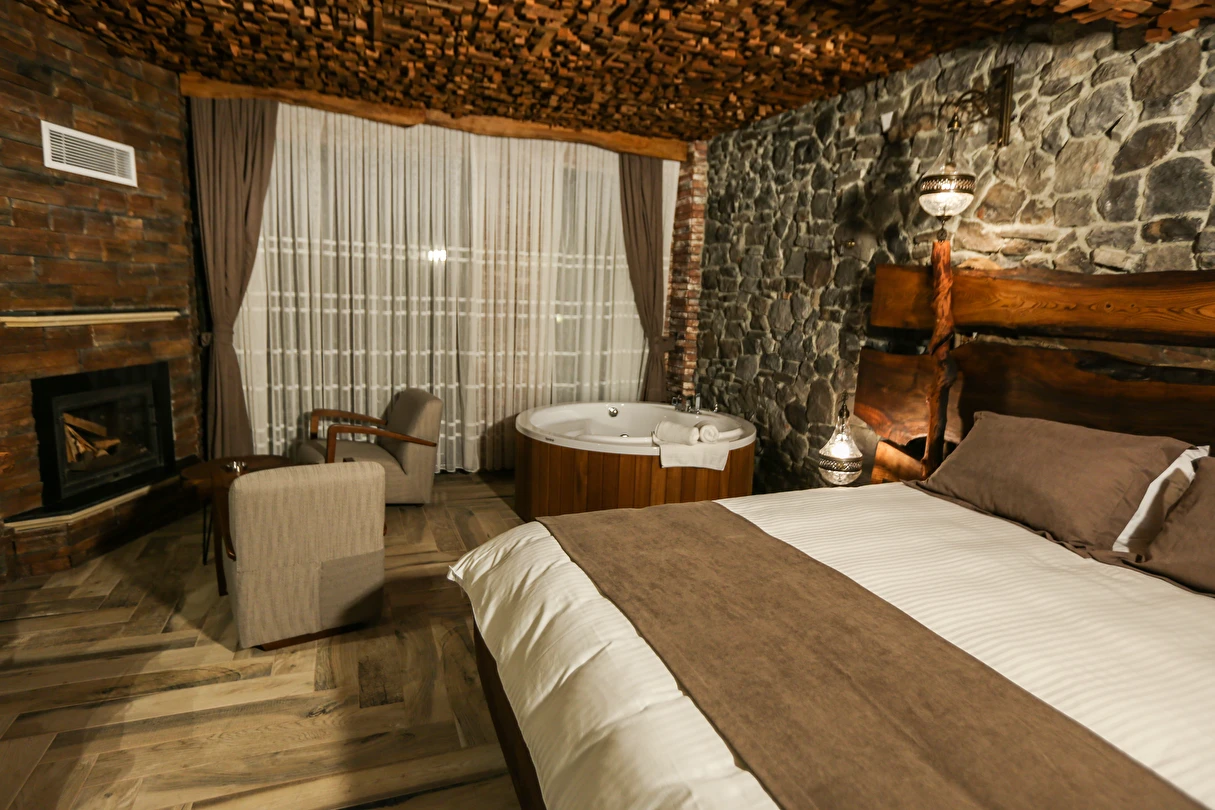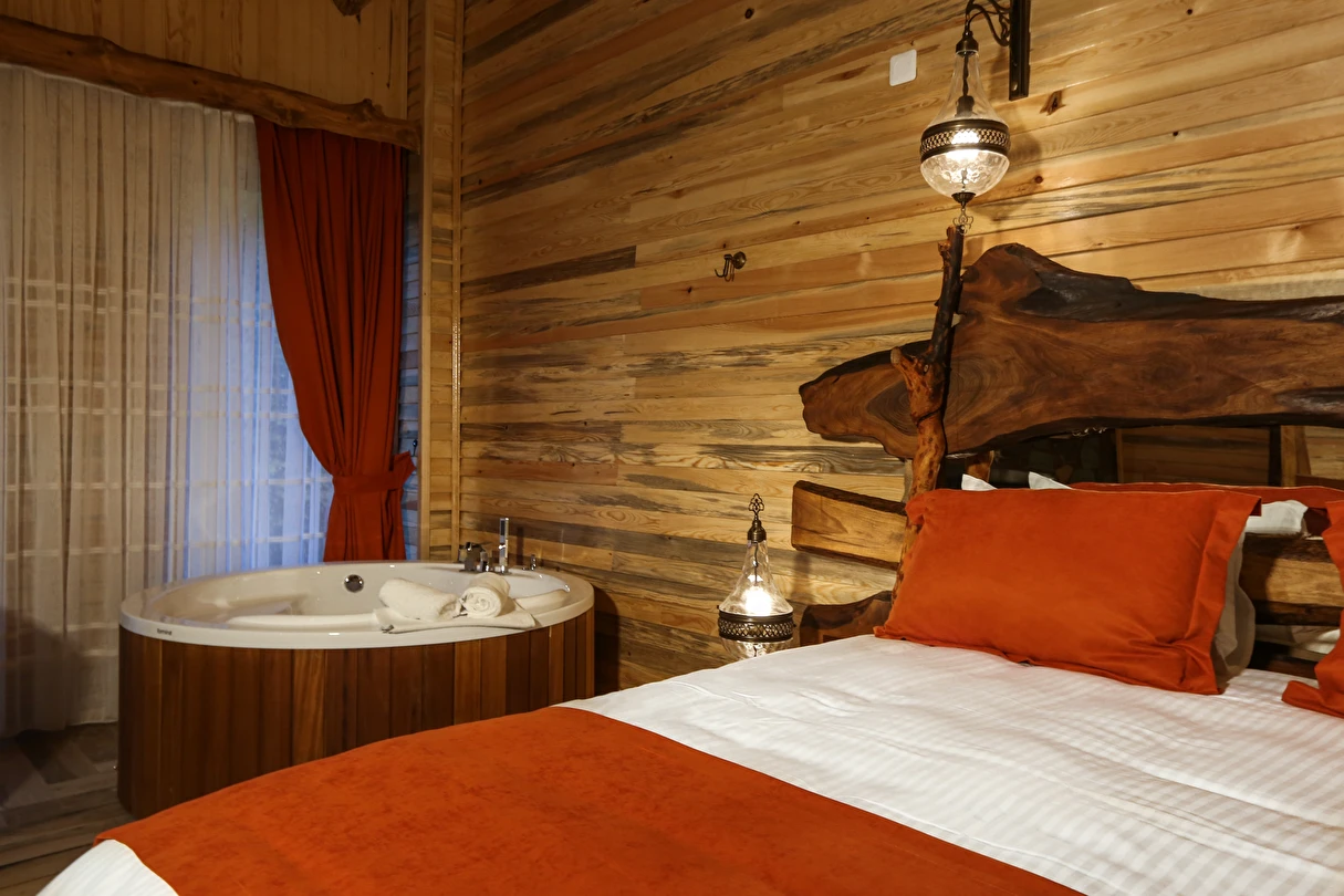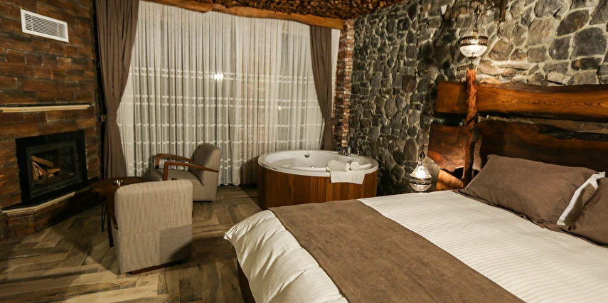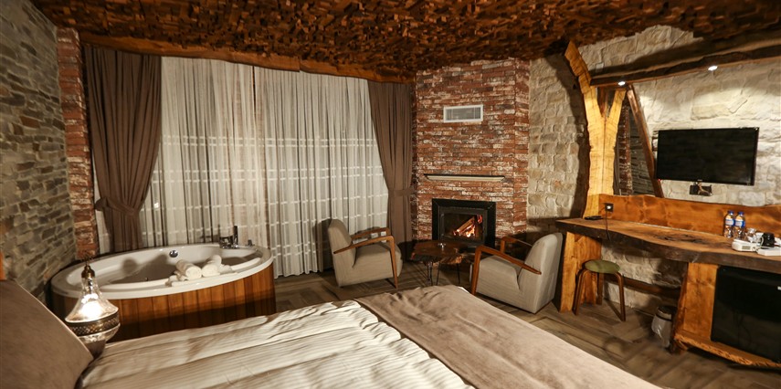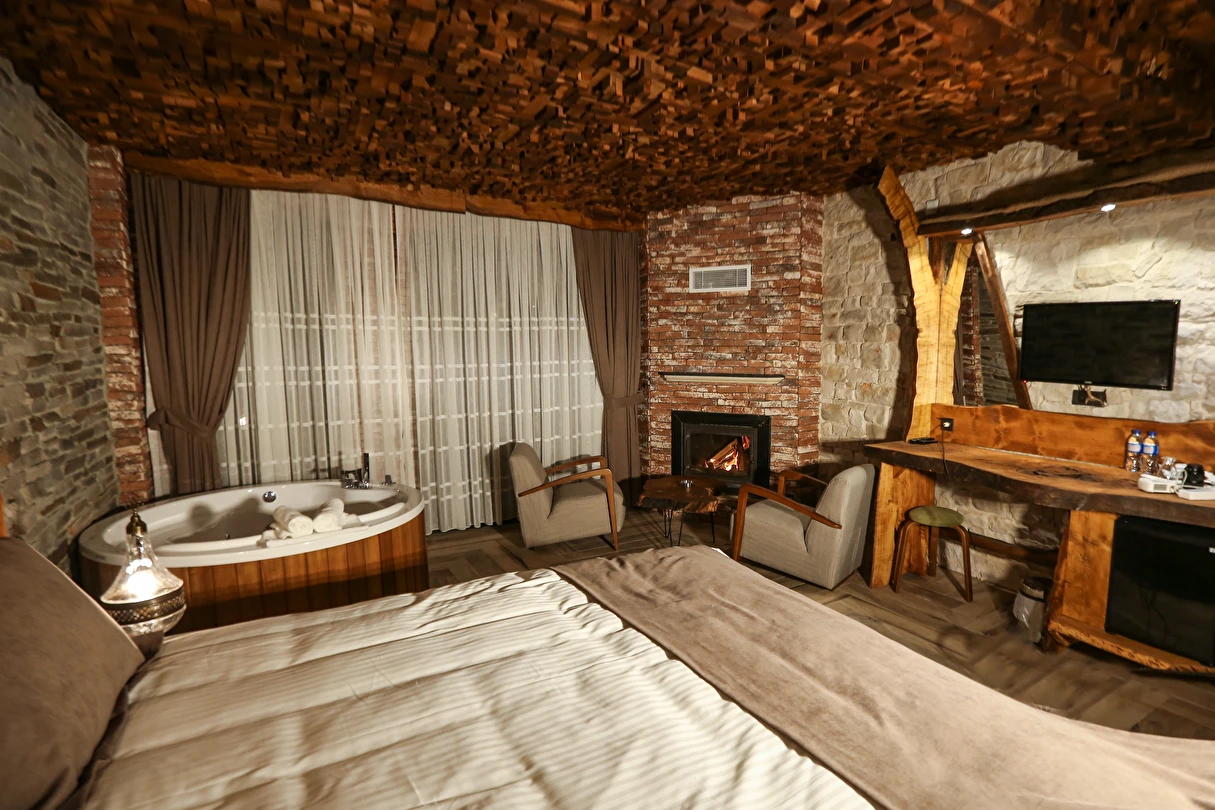 Daha Fazla GösterAbant Şömine’s Otel, dört mevsim birbirinden güzel manzaralarıyla ziyaretçilerine dolu dolu bir tatil deneyimi sunan Abant’ta konumlanıyor. Sıcacık atmosferi ile evinizin konforunu yansıtan odalarında keyifle konaklayabileceğiniz tesis, doğayla iç içe huzurlu bir konumda hizmet veriyor. Dere kenarındaki bir bahçenin içinde yer alan tesis, jakuzili ve şömineli odalarıyla misafirlerinin huzurlu ve keyifli zaman geçirmesine olanak sağlıyor.
