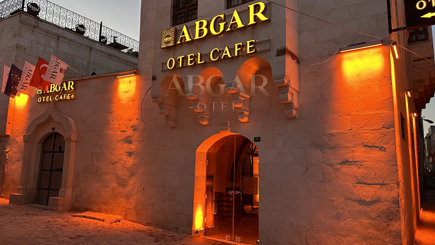 Tarihi kayıtlarda Abgar efsanesinde, 5. Abgar Ukkama’nın ilk Hıristiyan kral olduğu ve Edessa Bölgesi’nde (Şanlıurfa) hüküm sürdüğü Hazreti İsa’nın tebliğinden hemen sonra bu dini kabul ettiği belirtiliyor. Efsaneye göre; V. Abgar ilk Hıristiyan kraldır. Cüzzam hastalığına yakalanan ve bu nedenle oldukça acı çeken 5. Abgar’ın, Hazreti İsa’nın gönderdiği mucizevi mendil sayesinde iyileştiği rivayet ediliyor. Otelimiz ismini V.Abgar Kralından almıştır. ABGAR Otel in bulunduğu konum itibariyle 500-600 yıllık tarihe dayalı olup geçmiş yıllarda ermeni asıllı vatandaşlar tarafından kullanılan 3 adet konağın birleştirilmesi ile özel olarak tasarlanmıştır. Birbirinden muhteşem zerzembe odaları , süit odaları ,aile odaları ve daha bir çok özelliği olan toplam 21 odası olan , 3 ayrı avlu birbirinden bağımsız , 3 ayrı terastan oluşmuş olup tarihi çarşılar ve balıklı göl bölgesine yakın görkemli bir yapıdır.