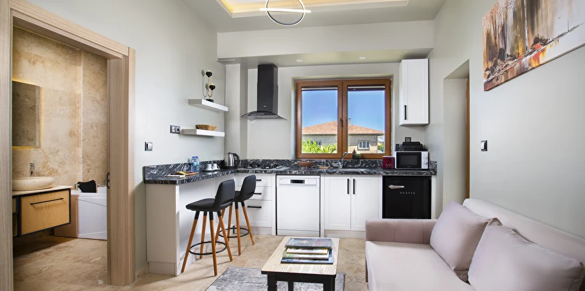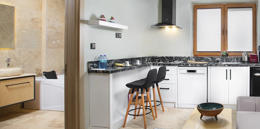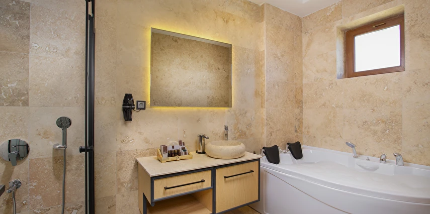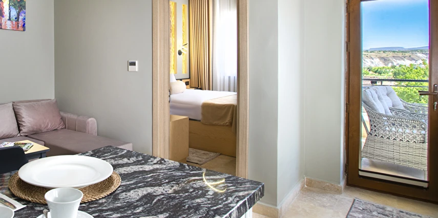 Sunduğumuz jakuzili oda ve mini mutfak gibi özel detaylar, siz değerli misafirlerimize rahat ve keyif dolu bir atmosfer sunmayı amaçlıyor. Her ayrıntının özenle düşünüldüğü bu konaklama biriminde, Kapadokya'nın büyüleyici manzaralarını izlerken kendinizi evinizde hissedeceksiniz.
