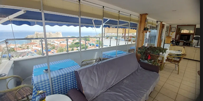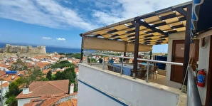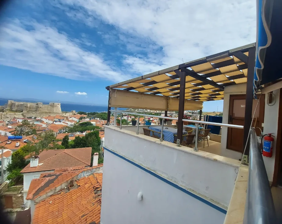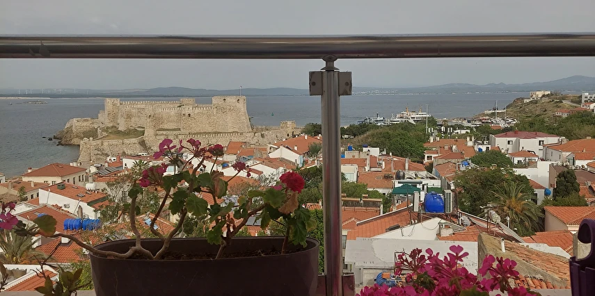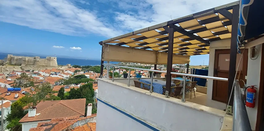 Adalı Konuk Evi, Tenedos Kalesi’nin arkasında, eski Yunan mahallesinde adaya hâkim bir tepede bulunur.