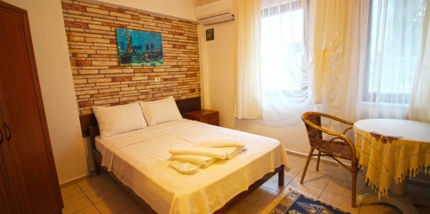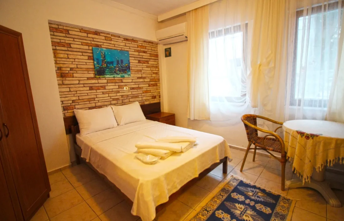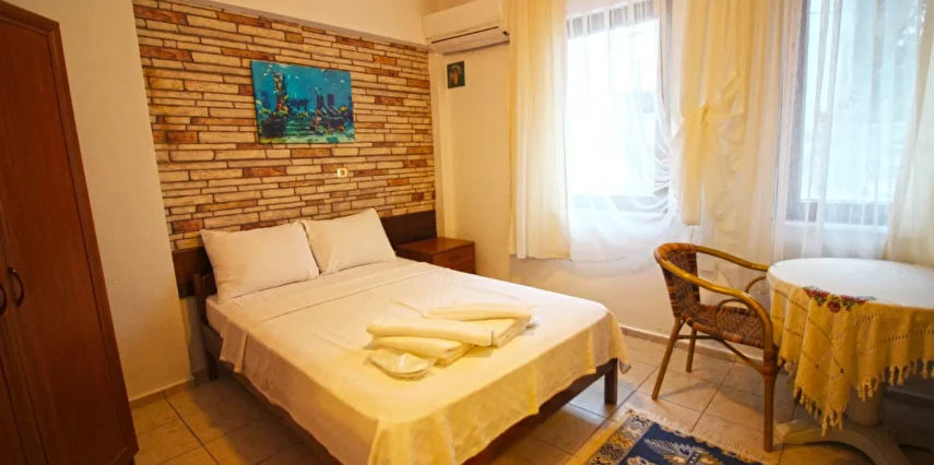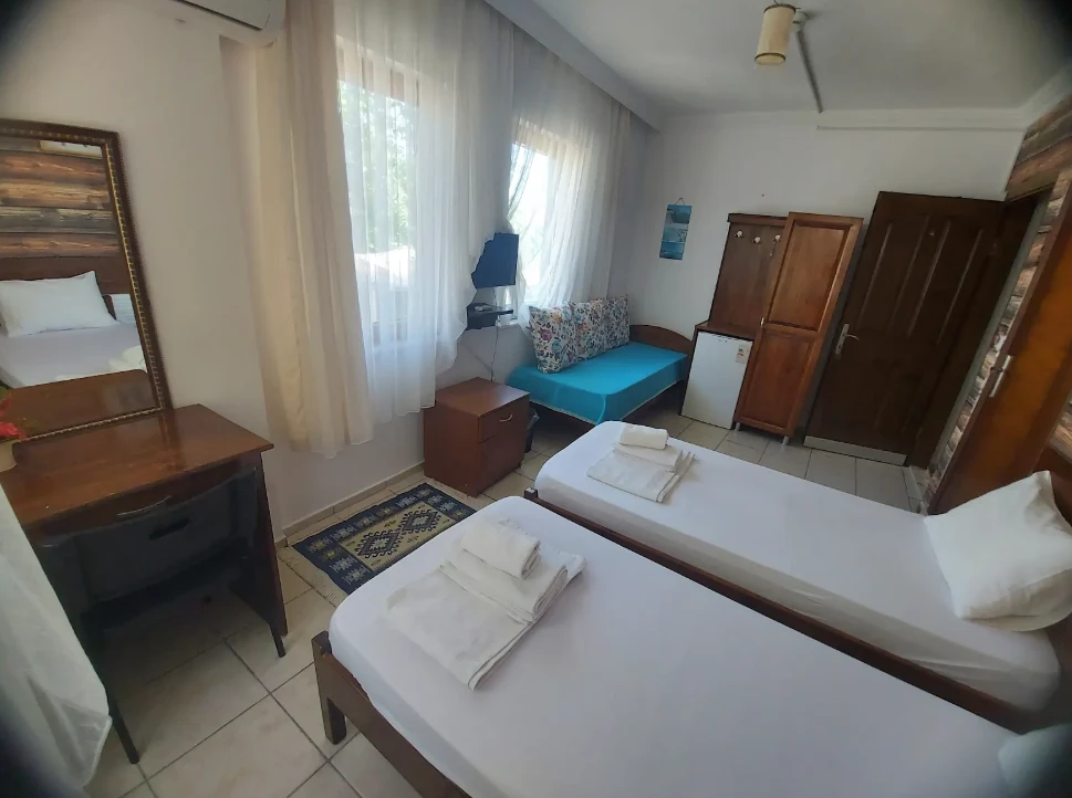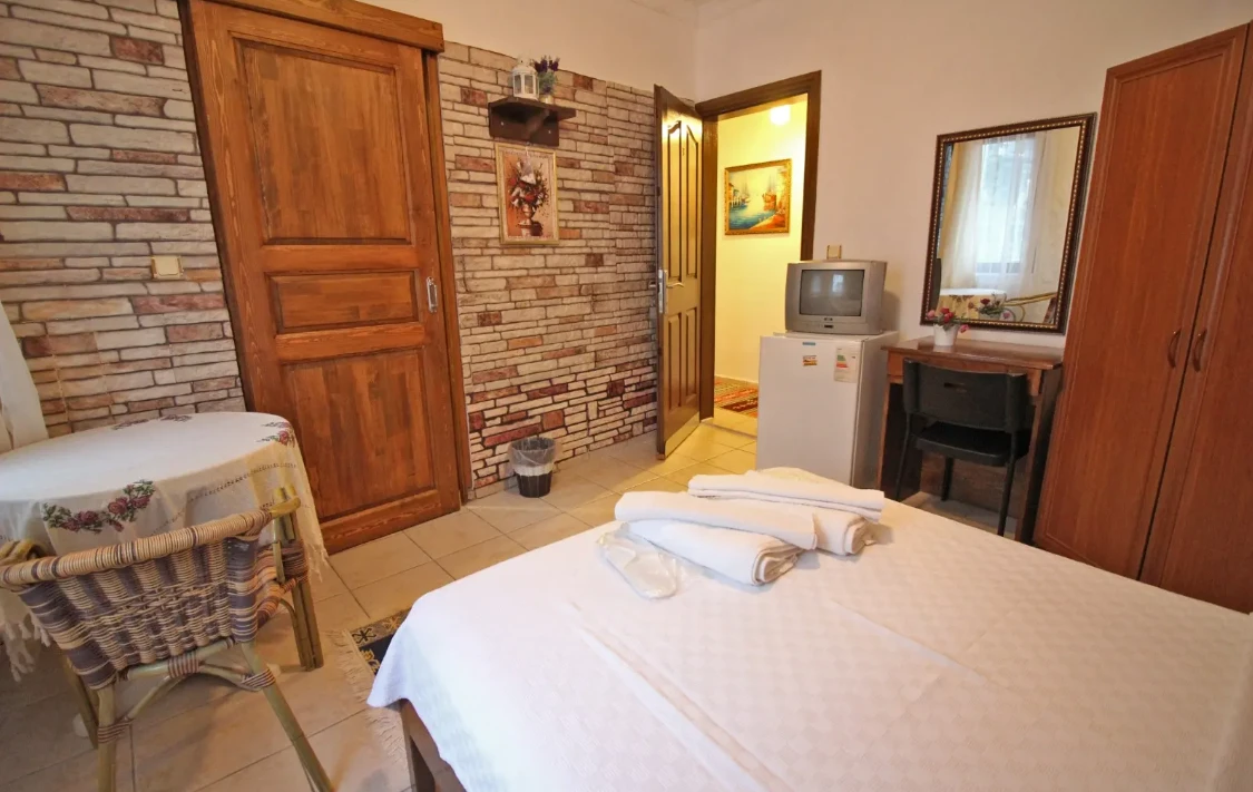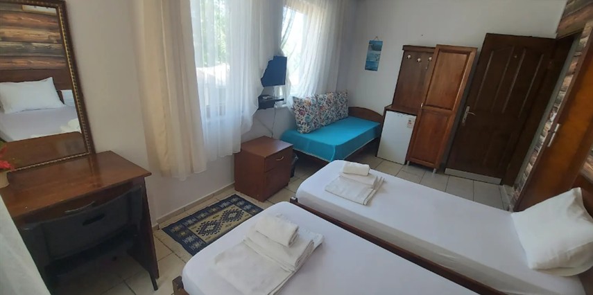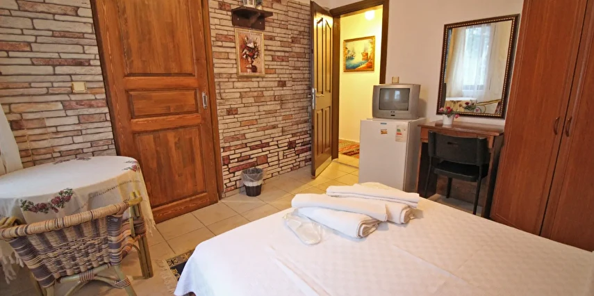 Adalı Konuk Evi’un odaları ahşap mobilyalarla döşenmiştir. Odalarda uydu TV, mini buzdolabı ve duşlu özel bir banyo bulunmaktadır.