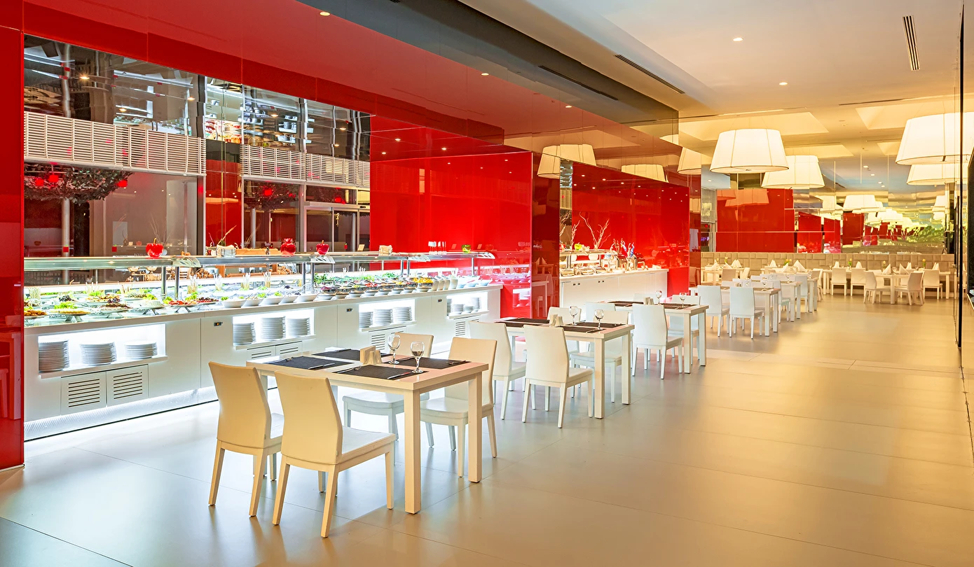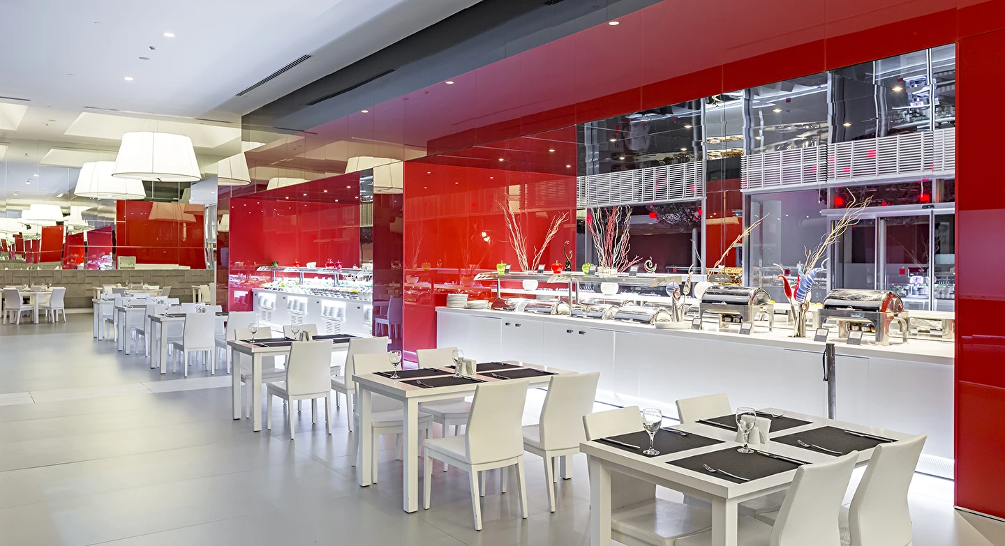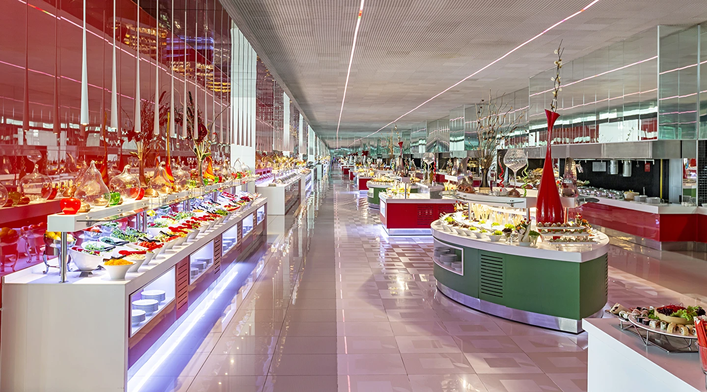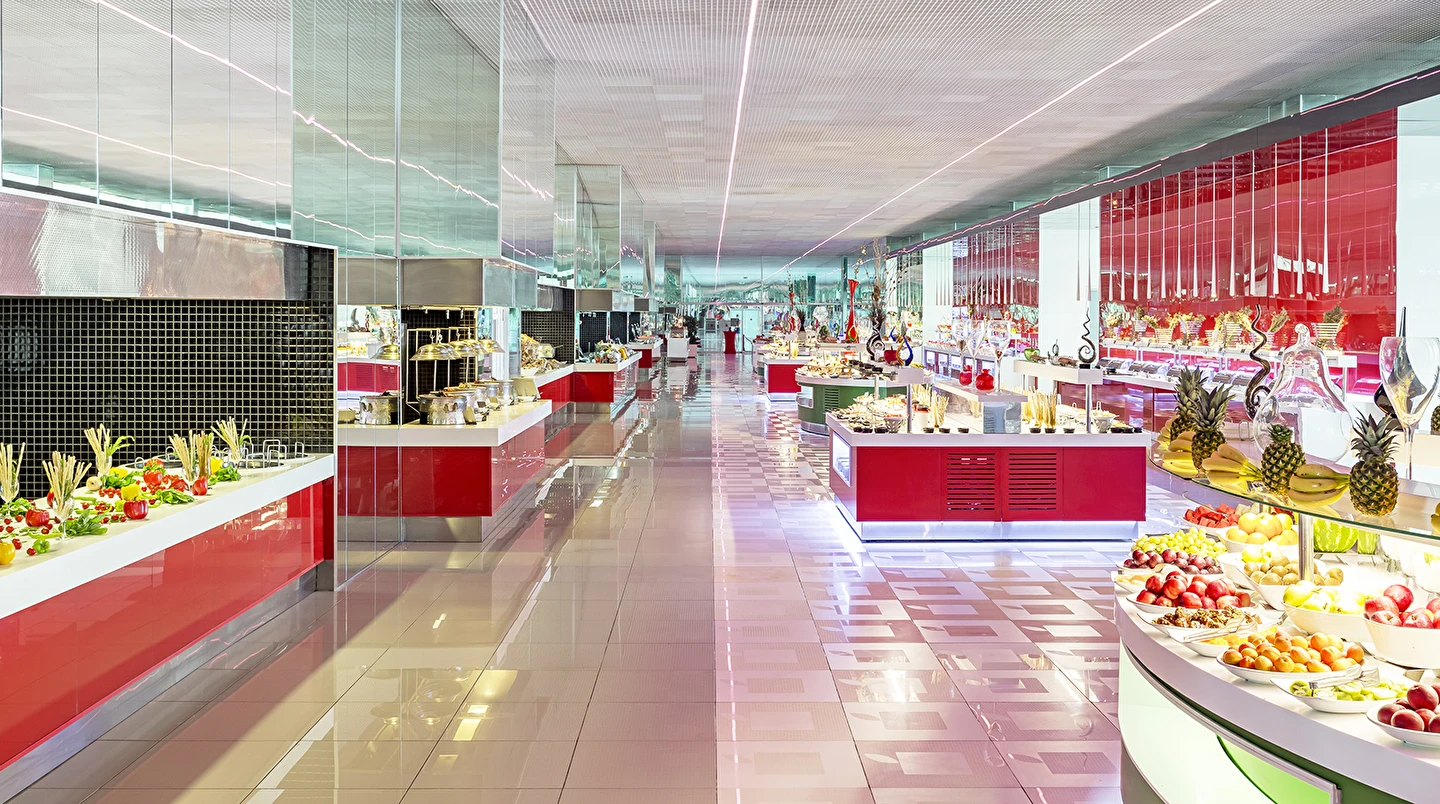 A ‘la Carte restoranlar ücretlidir ve öncesinde rezervasyon yapmak gerekir. Mezes, Basilico Blind ve Şark-i ,Steakhouse, Eros ve Arrigato restoranlarda menü ücreti uygulanır. Alkollü içecekler 18 yaş altı misafirlere servis edilmemektedir. A’la Carte restoranlar belirli rezervasyon sayısına ulaşınca misafirlere hizmet verecek olup, operasyon tarih ve saatleri mevsim koşullarına göre belirlenecektir.