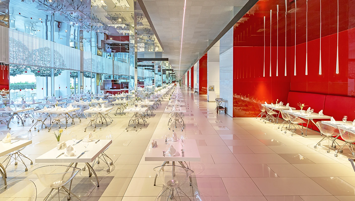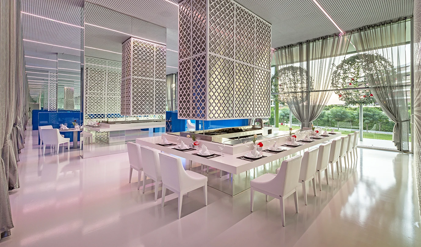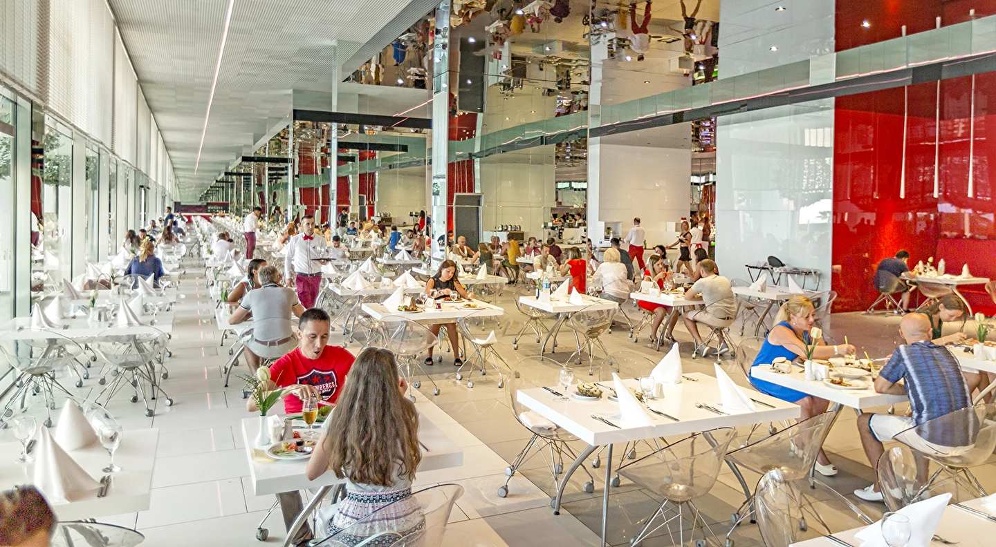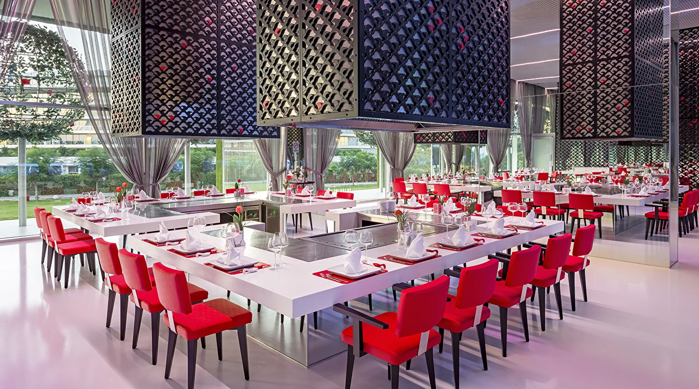 A ‘la Carte restoranlar ücretlidir ve öncesinde rezervasyon yapmak gerekir. Mezes, Basilico Blind ve Şark-i ,Steakhouse, Eros ve Arrigato restoranlarda menü ücreti uygulanır. Alkollü içecekler 18 yaş altı misafirlere servis edilmemektedir. A’la Carte restoranlar belirli rezervasyon sayısına ulaşınca misafirlere hizmet verecek olup, operasyon tarih ve saatleri mevsim koşullarına göre belirlenecektir.