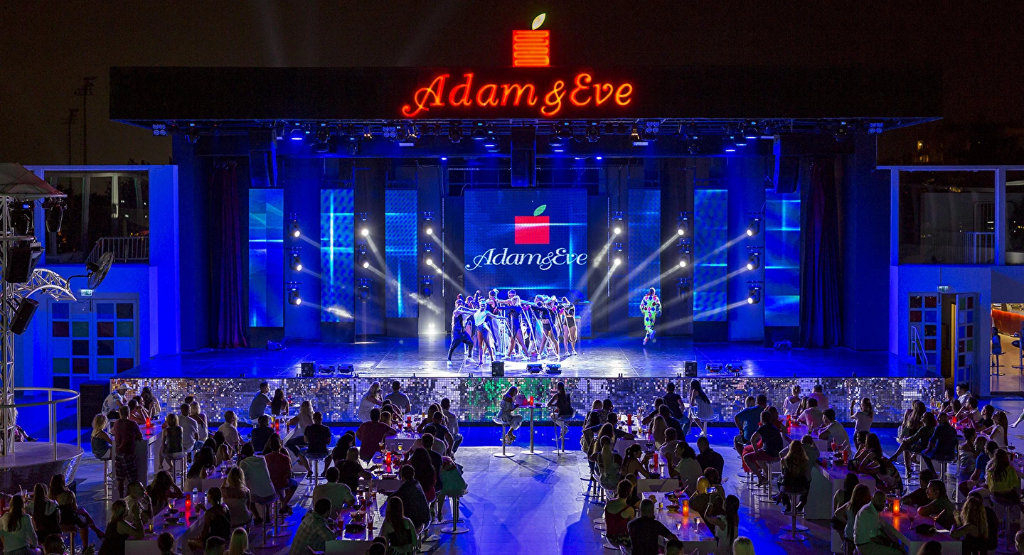 - Adam & Eve ayrıcalığıyla eşsiz sürpriz parti konseptleri (haftanın belirli günlerinde), Spor Akademisi (Haftanın belirtilen gününde Kangoo, Aquabike vb.), Canlı müzik (haftanın belirli günlerinde, Sunset barda), Müzikli şovlar, Yeni Nesil Profesyonel Dans Şovlar ücretsizdir.