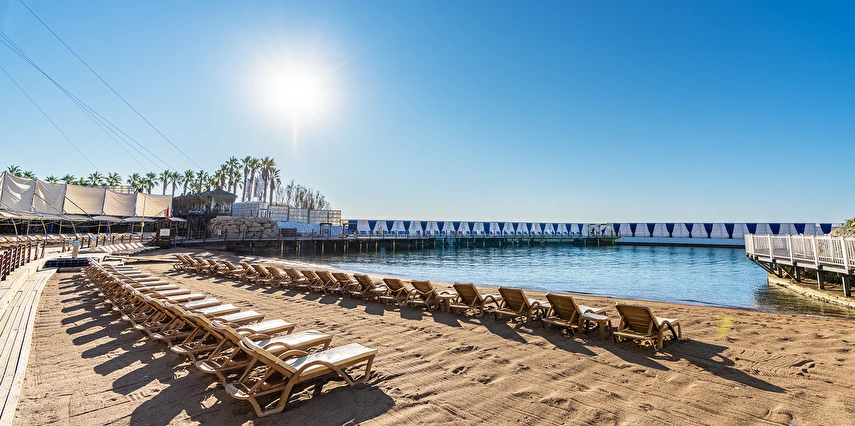 Yetişkin Plaj (+18) ortak kullanım alanı olup denizin yapısı gereği sadece +18 yaş ve üzeri, iyi derecede yüzme bilen misafirlerin kullanımına açıktır.