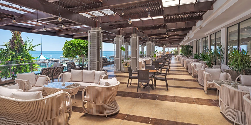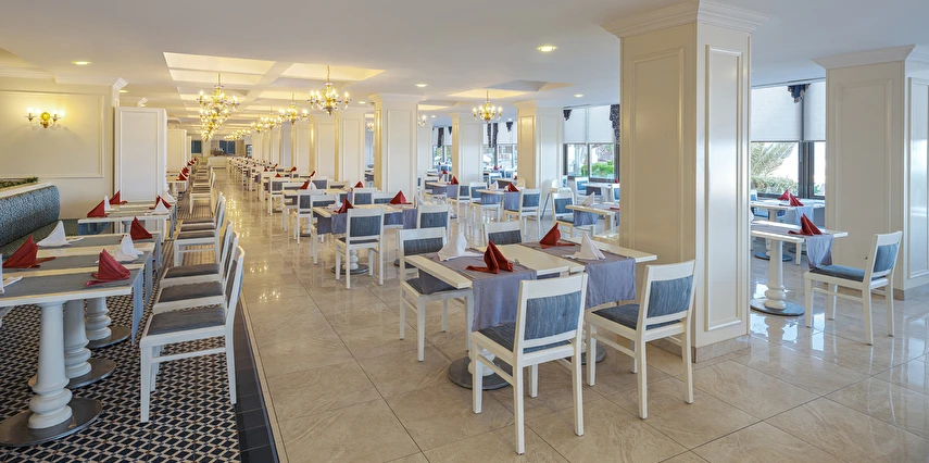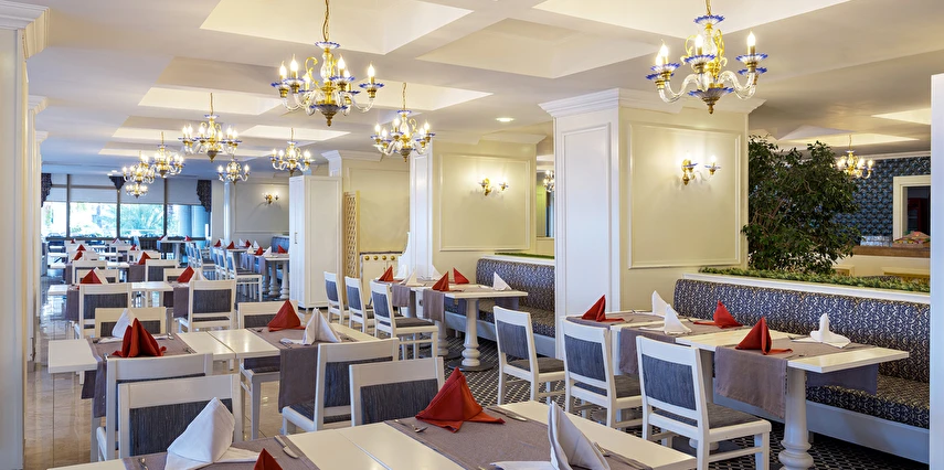Premium Alkolsüz Her şey Dahil Konseptinde; Sabah kahvaltısı ve akşam yemekleri açık büfe olup tesisin belirlemiş olduğu markalar dahilinde yerli alkolsüz içecekler 24 saat geçerlidir. Kahvaltıda çay kahve ve taze portakal suyu, meyve suları ücretsizdir. Akşam yemeğinde sıcak soğuk tüm içecekler servis edilir. Akşam yemeklerinde taze meyve suları ücretlidir. Türk kahvesi sadece belirlenen alanda ücretsiz sunulmaktadır. Tesiste alkollü içecek servisi bulunmamaktadır ve dışarıdan alkollü içecek tesise getirilmesi yasaktır.