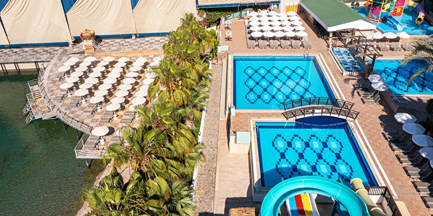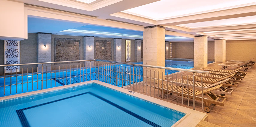 Bay için tatlı su havuzları; 1 adet 100 m² ve 1,20 cm derinliğinde kaydıraklı tatlı su havuzu // 1 adet 120 m² ve 1,40 cm derinliğinde kapalı ve ısıtmalı havuz (Sezonluk olarak kullanılmaktadır) // 1 adet 7 m² ve 0,40 cm derinliğinde kapalı ve ısıtmalı çocuk havuzu (Sezonluk olarak kullanılmaktadır)