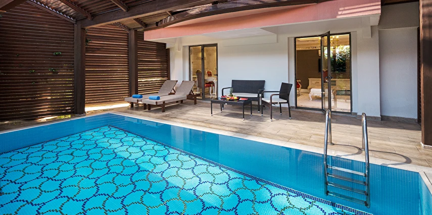 Ortak Havuz (Aile Havuzu) ; Misafirlerin aileleriyle birlikte ortak olarak kullanabilecekleri, Premium binanın ön kısmında bulunan havuzdur. Şezlong ve şemsiye hizmeti ücretsiz olarak sunulacaktır. 1 adet 260 m² ve 1,40 cm derinliğinde tatlı su havuzu // 1 adet 100 m² ve 1,40 cm derinliğinde AQUA tatlı su havuzu // 1 adet 100 m² ve 1,40 cm derinliğinde tatlı su havuzu (RELAX HAVUZ) // 1 adet 22 m² ve 0,40 cm derinliğinde çocuk tatlı su havuzu (RELAX HAVUZ) // 1 adet 12 m² ve 0,30 cm derinliğinde çocuk tatlı su havuzu