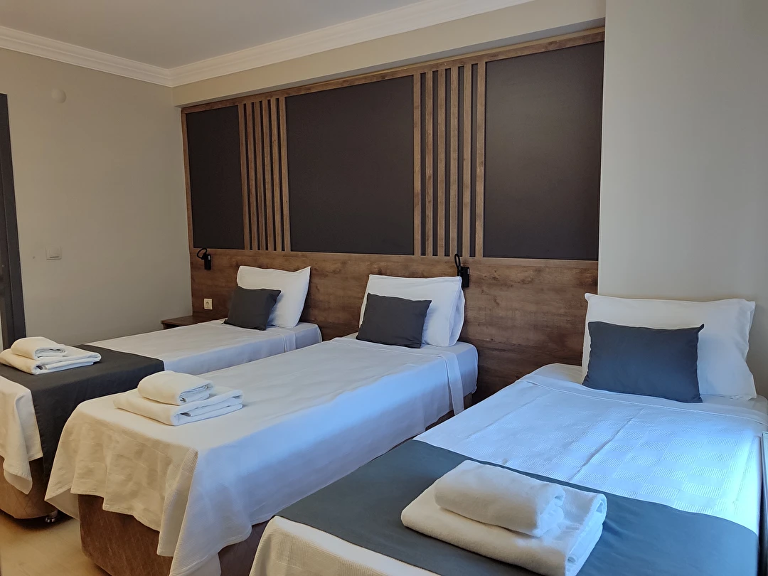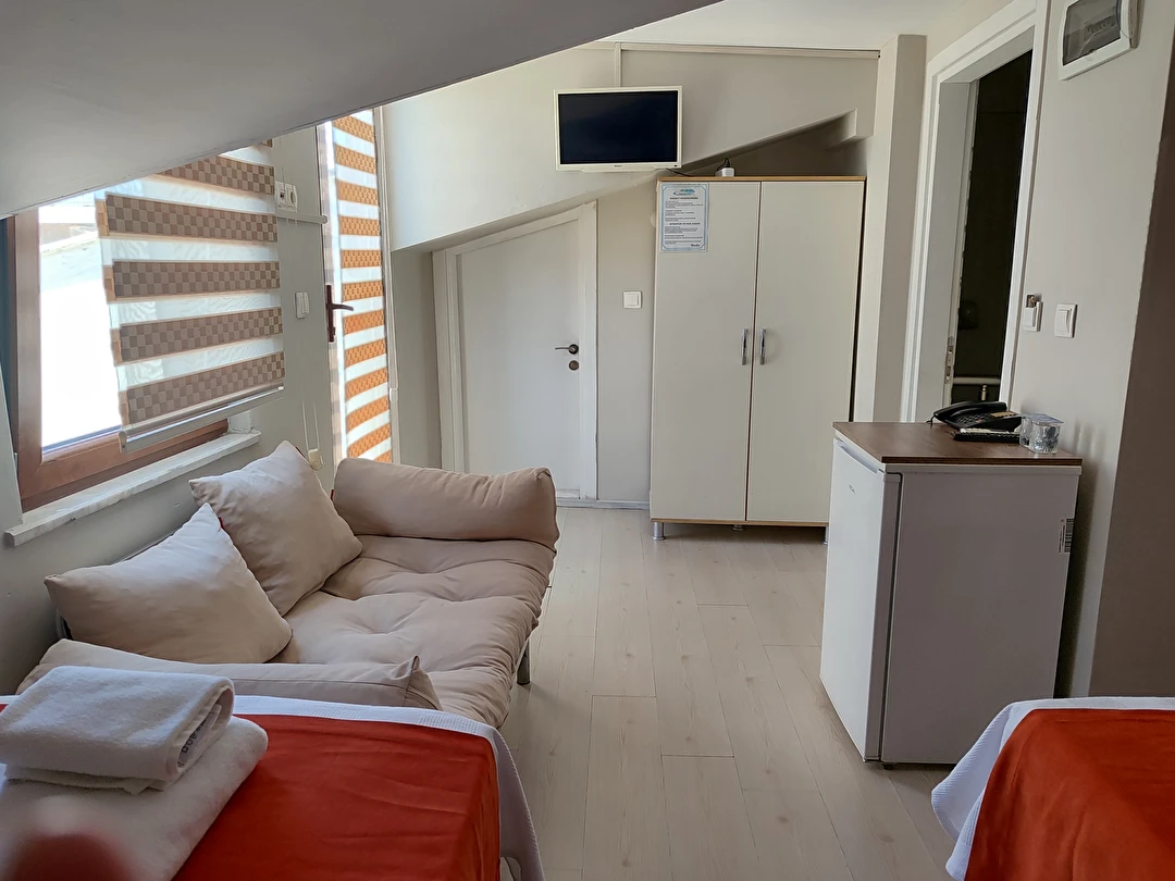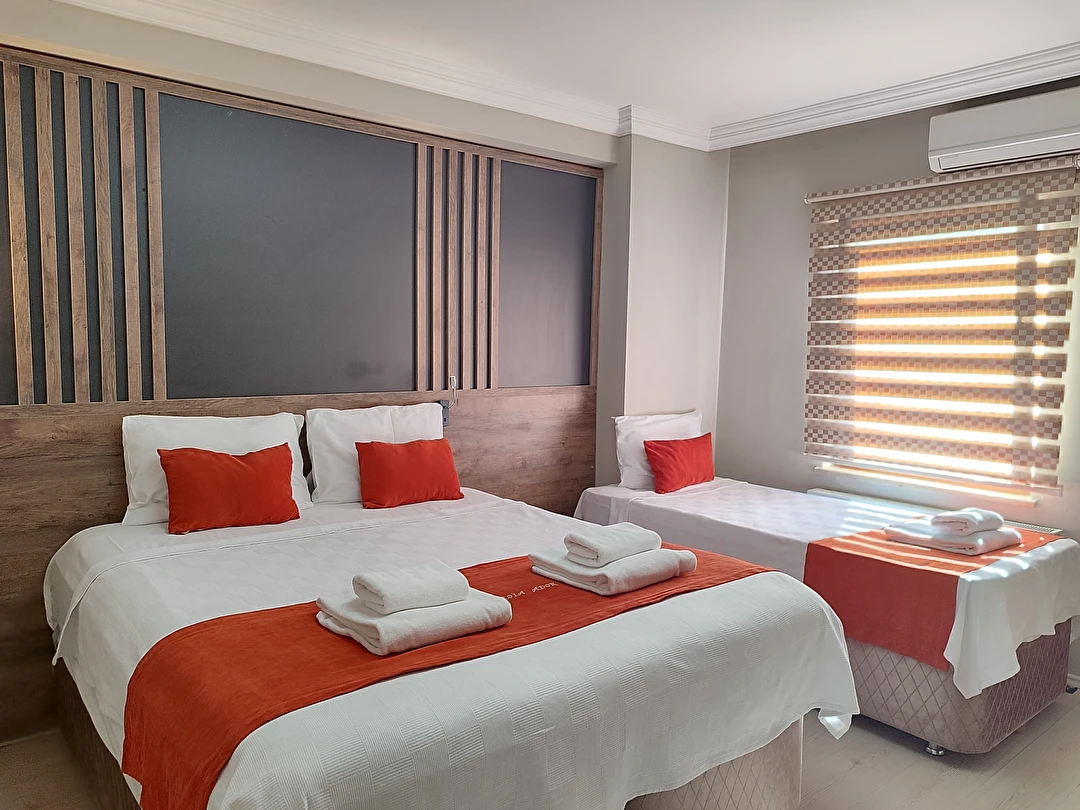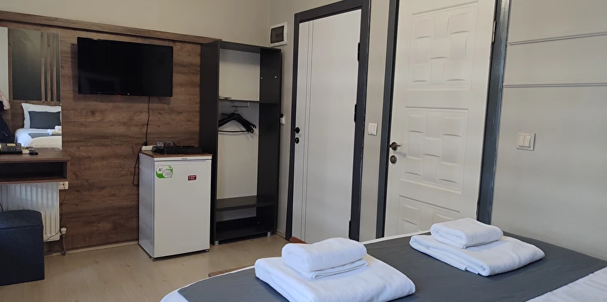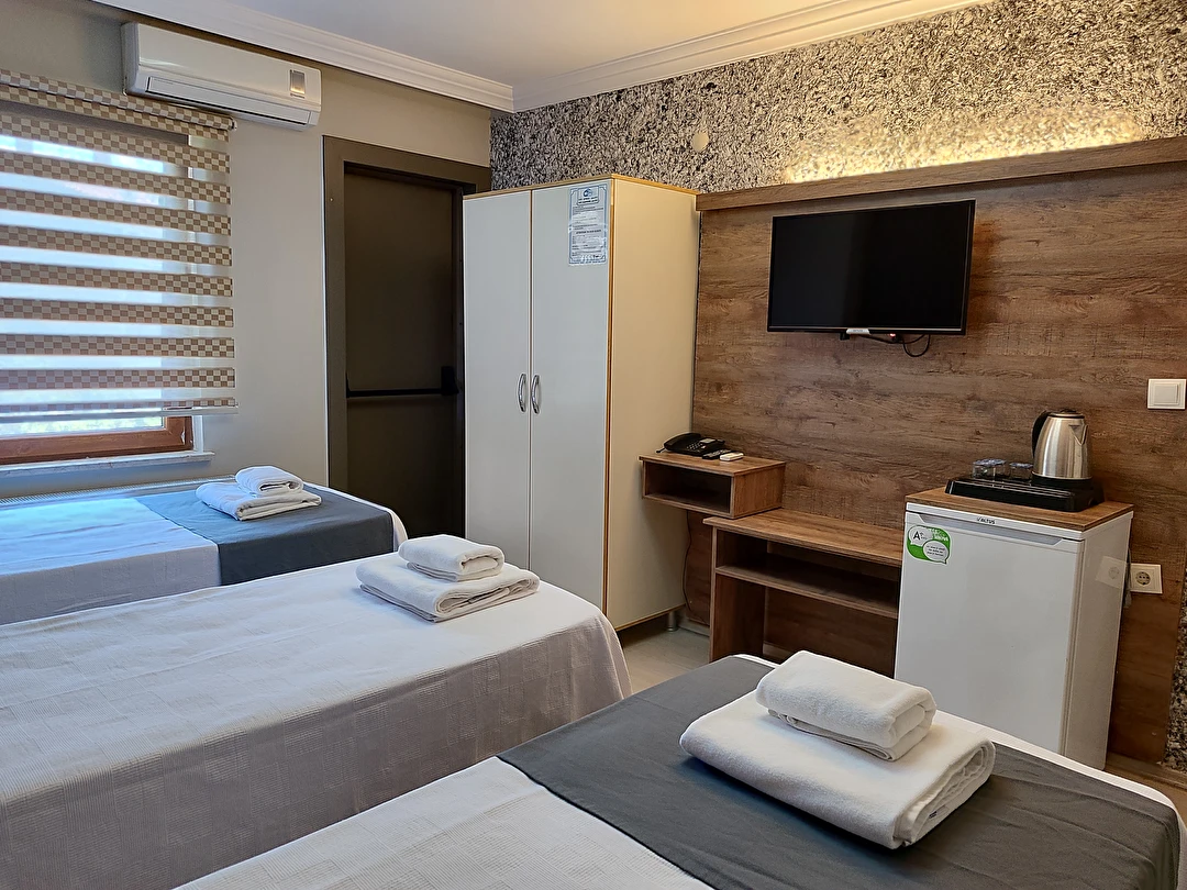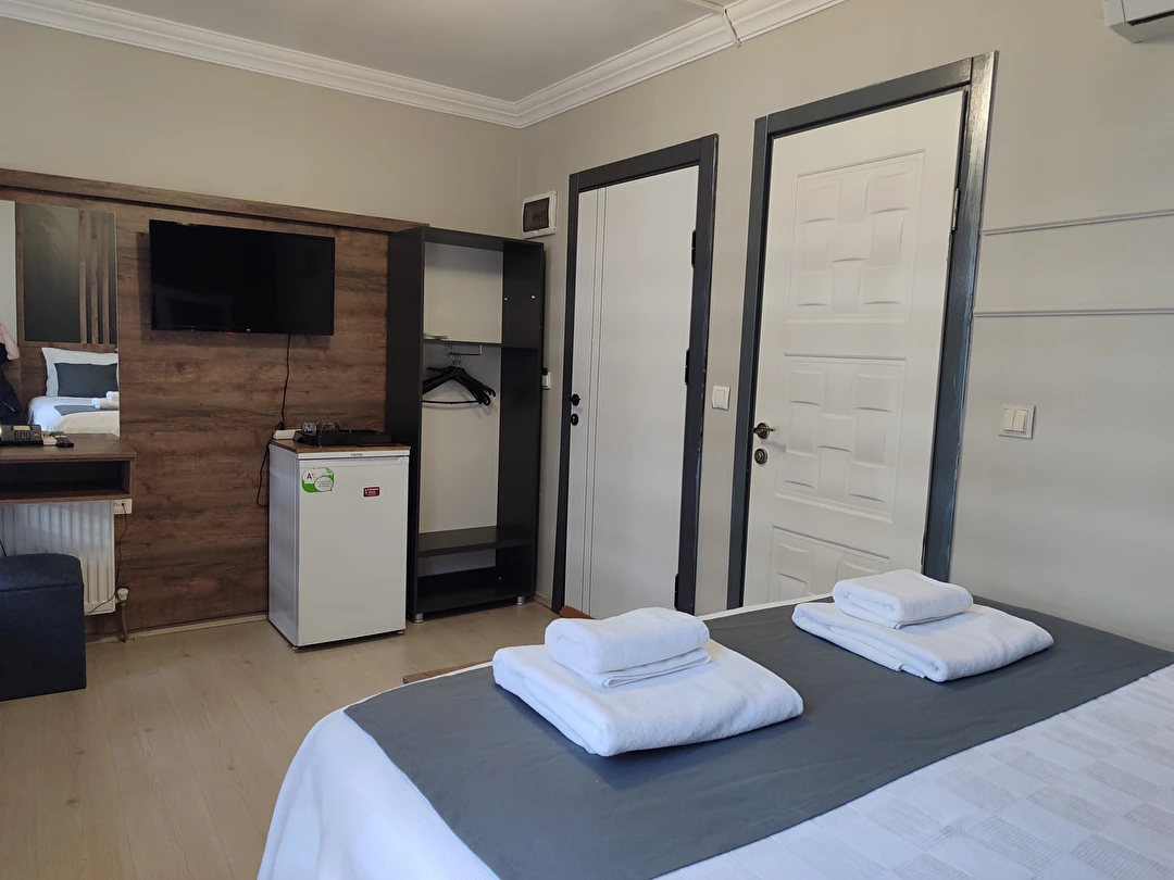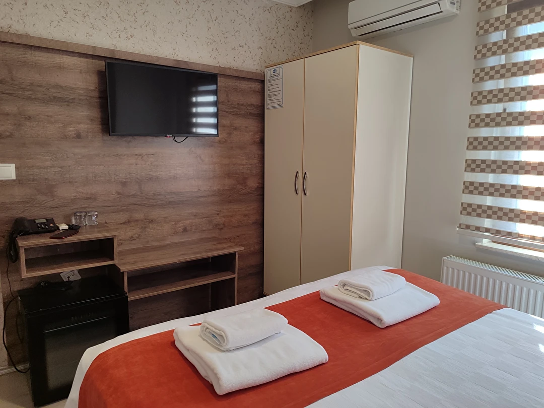 Daha Fazla GösterAdor Troia Otel Çanakkale şehir merkezinde feribot iskelesine ve turistik noktalara yürüme mesafesinde konumlanmış, oda & kahvaltı konseptinde hizmet veren sıcak ve ekonomik bir şehir otelidir; tüm odalarında ücretsiz Wi-Fi, klima, özel banyo, saç kurutma makinesi ve televizyon gibi temel konfor donanımları bulunur, her sabah açık büfe kahvaltı sunulur, 24 saat resepsiyon hizmeti ile misafir desteği sağlanır ve merkezi konumu sayesinde gezilecek yerlere kolay erişim imkânı tanır.