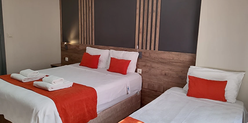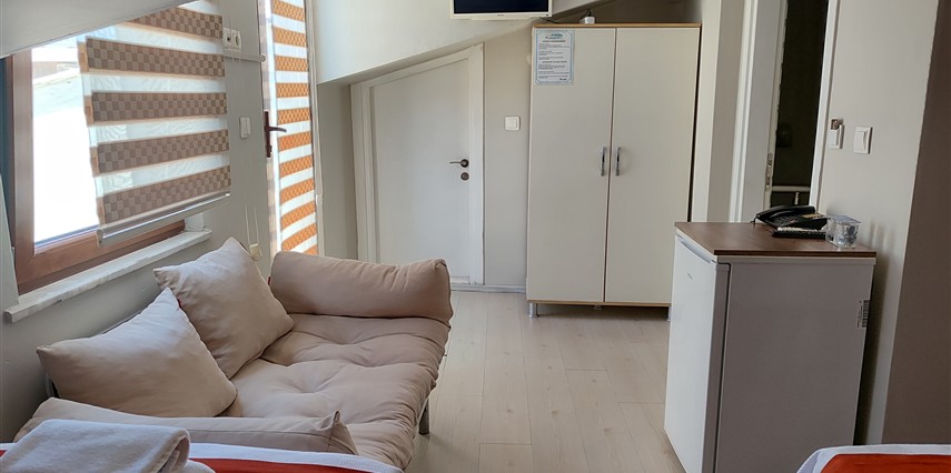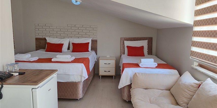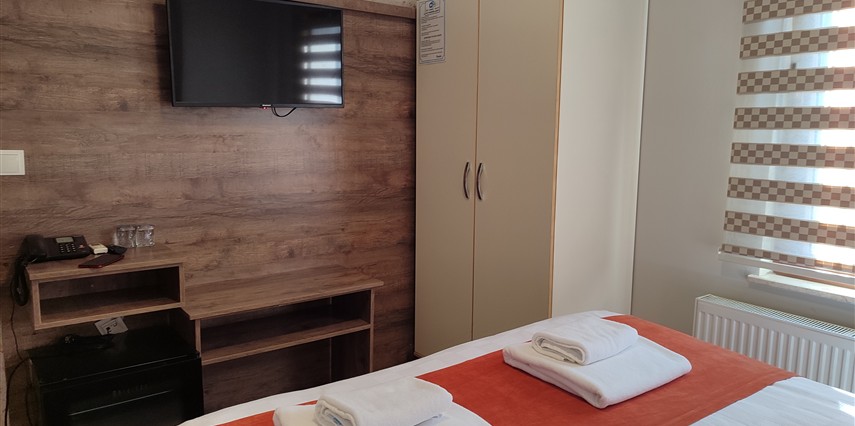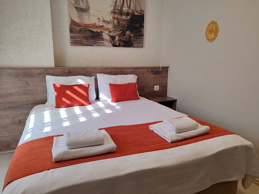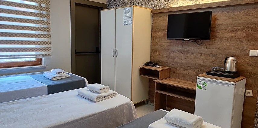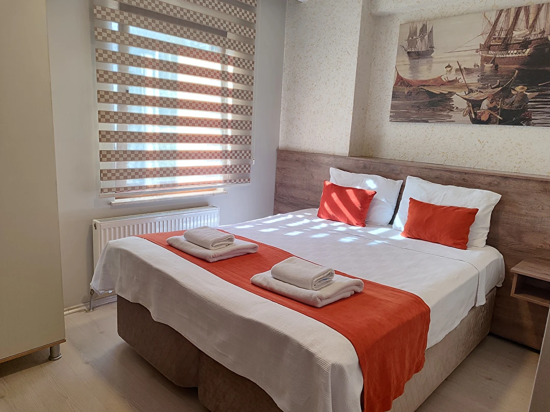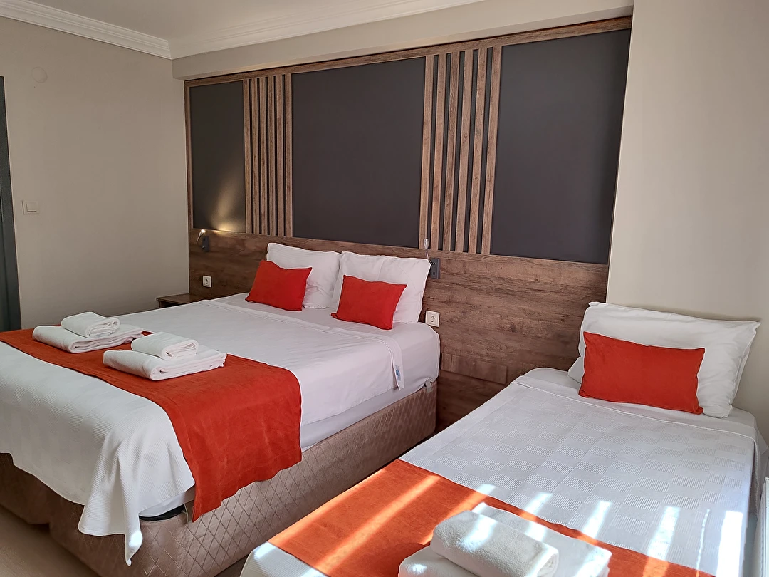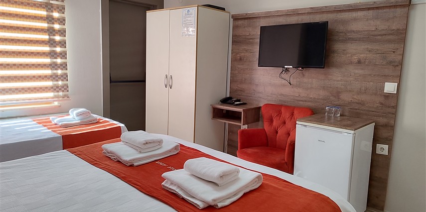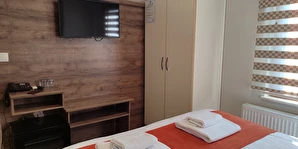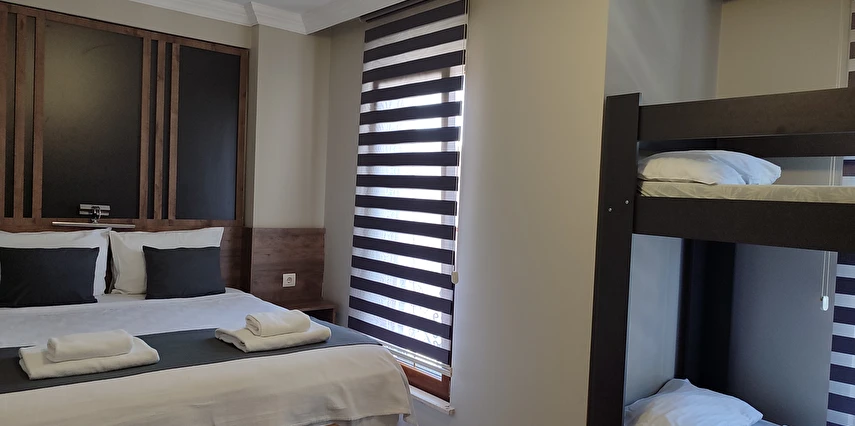 Daha Fazla GösterAdor Troia Otel Çanakkale şehir merkezinde feribot iskelesine ve turistik noktalara yürüme mesafesinde konumlanmış, oda & kahvaltı konseptinde hizmet veren sıcak ve ekonomik bir şehir otelidir; tüm odalarında ücretsiz Wi-Fi, klima, özel banyo, saç kurutma makinesi ve televizyon gibi temel konfor donanımları bulunur, her sabah açık büfe kahvaltı sunulur, 24 saat resepsiyon hizmeti ile misafir desteği sağlanır ve merkezi konumu sayesinde gezilecek yerlere kolay erişim imkânı tanır.