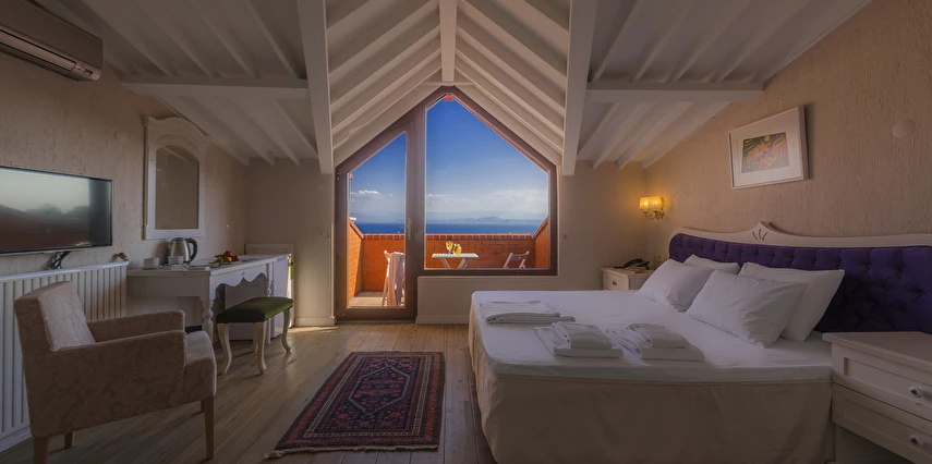 Aeneas Hotel farklı boyutlarda 19 oda, Restaurant, Bar, Açık Havuz, Toplantı salonu, Geniş otoparkı, Geniş Bahçesi ve Organik sebze meyve üretim alanları ve iddialı mutfağı ile yaz ve kış mevsimlerinde faaliyettir. Aeneas Hotel Kaz Dağlarına doğa yürüyüşleri için çok uygun konumdadır. Konuklar arzu ederlerse mevcut tatil köyünün tenis kortlarından, açık havuzlarından ve mavi bayraklı plajından ücretsiz olarak yararlanabilirler. Tesiste evcil hayvan kabul edilen 2 oda mevcuttur, kontenjan dahilinde olmaktadır. Rezervasyon yapmadan önce tesisi arayarak müsaitlik doğrultusunda işlem gerçekleştirmenizi rica ederiz.