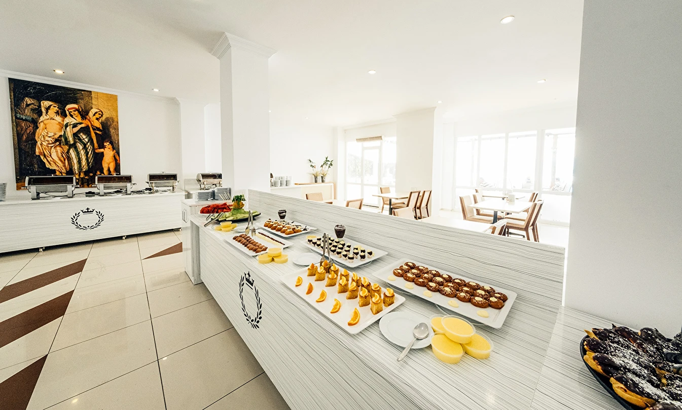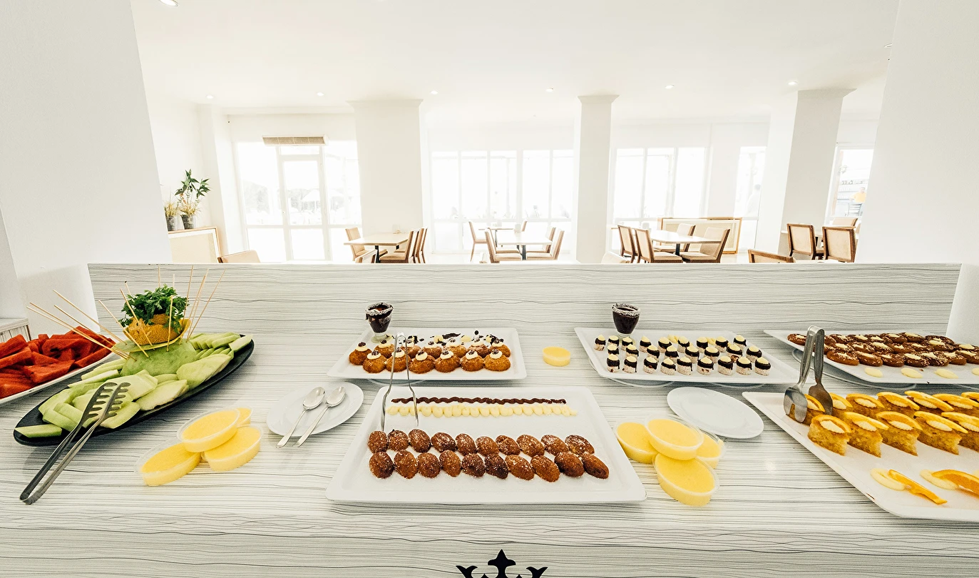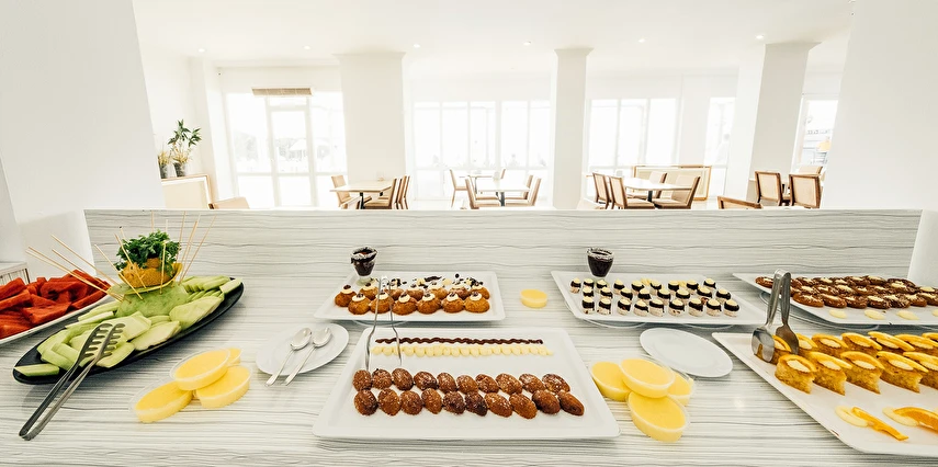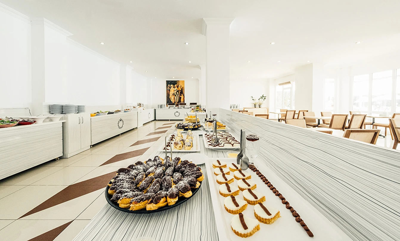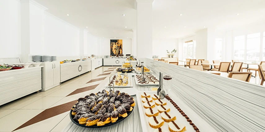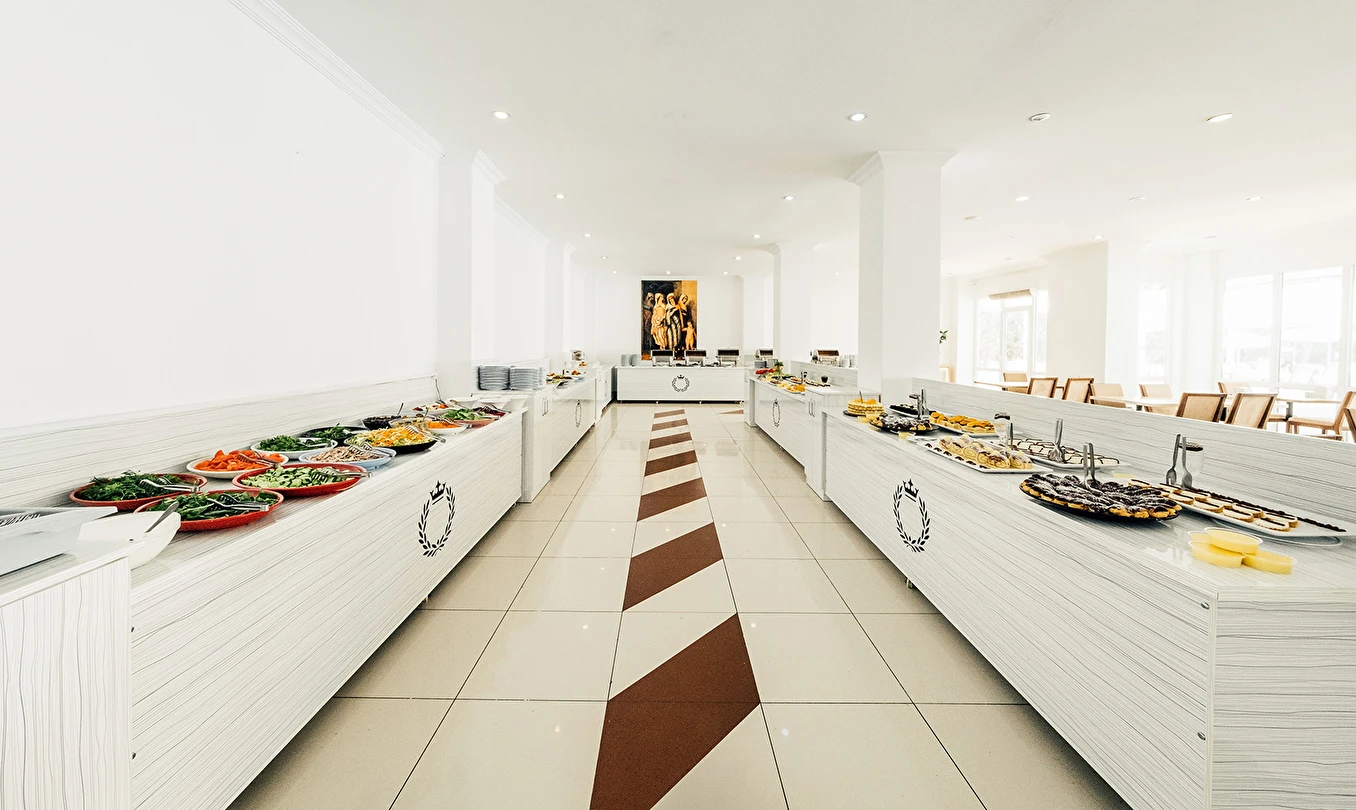 Tesiste 1 adet restoran hizmet veriyor. Her şey dahil konaklamalarda; sabah, öğle ve akşam açık büfe yemekler ücretsizdir.