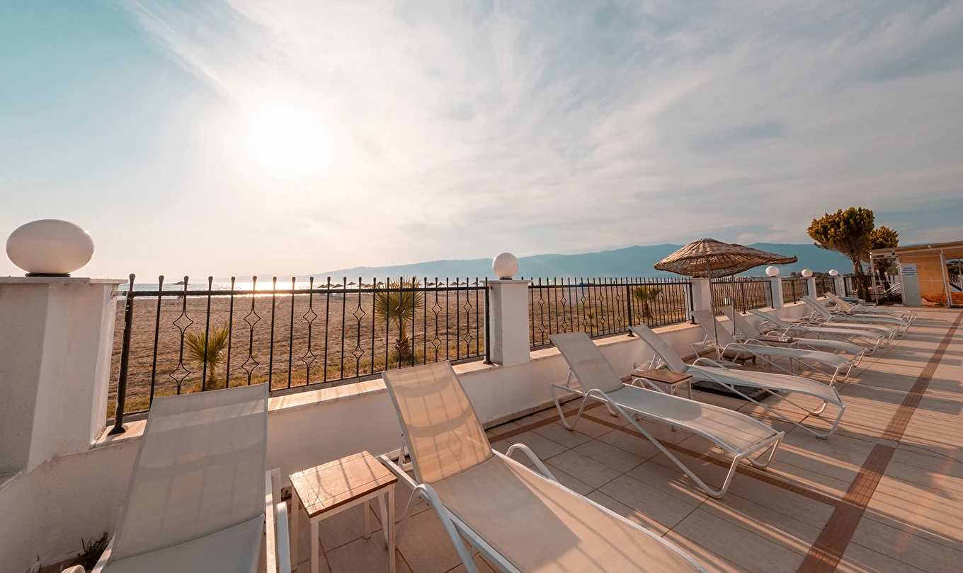 Denize sıfır konumdaki tesiste misafirler; ortak kullanıma açık özel halk plajını kullanıyor. Plajda, tesise ait alandaki şezlong ve şemsiyeler ücretsiz, plaj havlusu ücretli. Denizi mavi bayraklıdır