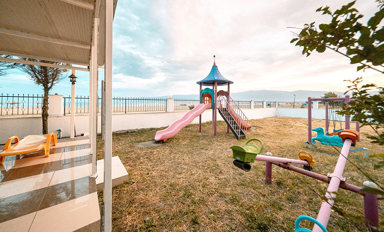 Tesiste çocuk misafirler için açık çocuk havuzu ve çocuk oyun parkı; bebek misafirler için restoranda mama sandalyesi bulunmaktadır.