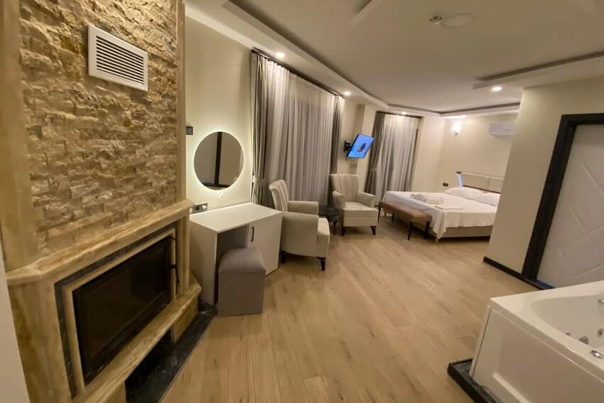 Daha Fazla GösterTesisimiz 2024 Yılı itibari ile faaliyete başlamış, önceden olduğu gibi bugün de ihtiyaçlarınıza cevap verecek ve konaklamanız sırasında tatiliniz için her sezonda gerekli ortamı sağlayacak, beklentinizi karşılayacak şekilde hizmet vermeye devam etmektedir. Standart oda kavramının bulunmadığı, tüm odalarımızın şömine barındırdığı muadillerine göre geniş yaşam alanı sağlayan odalarımız ile servis vermekteyiz. Ağva Capella Hotel'de çiftlere sakin ve samimi bir tatil deneyimi sunuyoruz. Butik otelimiz Ağva'nın kalbinde, nehir ve denizle çevrili bir konumda yer almaktadır. Odalarımız şömine ve jakuzi gibi özellikleriyle maksimum dinlenmeyi sağlayacak şekilde tasarlanmıştır. Günlük yaşamın koşuşturmasından uzaklaşın ve bizimle huzurlu bir konaklamanın tadını çıkarın.