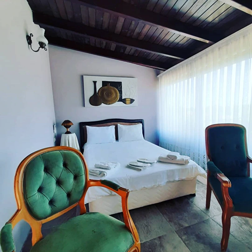 Şık ve konforlu odaları, özenle dekore edilmiş yaşam alanları ve samimi hizmet anlayışıyla misafirlerine ev sıcaklığında bir ortam sunar. Balayı çiftleri, romantik tatil planlayanlar ve doğayla iç içe dinlenmek isteyen misafirler için keyifli bir alternatif oluşturur.