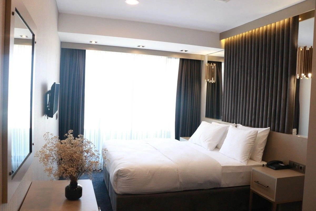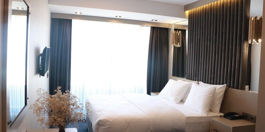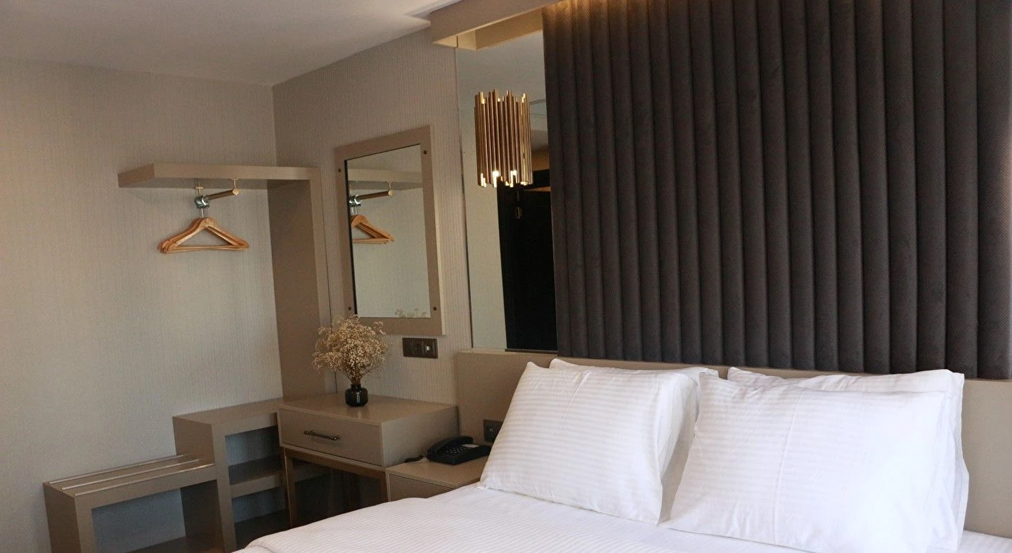 Air Boss Giresun City Hotel'de, ister iş seyahatinizde ister turistik amaçlı gezileriniz için şehirdeki en iyi konaklama imkanını sunuyor. Otelin tüm odaları modern ve şık bir dekorasyona sahip olup, tüm genel alanlarda ve odalarımızda ücretsiz Wi-Fi erişimiyle hizmet vermektedir. Tüm odalarda klima ve TV bulunmaktadır. Odaların hepsi duşlu özel banyoya sahiptir. İlave olanaklar arasında terlik ve ücretsiz banyo malzemeleri yer alır. Resepsiyonumuz 24 saat hizmet vermekle birlikte, konuklarımız otel bünyesindeki Vai Cafe & Patisserie' nin keyfini çıkarabilirler.