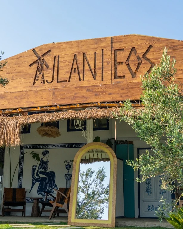 Plajın mimarisi, Cunda’nın taş sokaklarına ve deniz manzarasına uyumlu bir şekilde tasarlanmıştır. İç mekânlarda kullanılan doğal malzemeler ve sade renk paleti, misafirlere sıcak ve davetkâr bir ortam sunar. Ajlan Eos’un her köşesi modern olanaklarla donatılmış olup, her biri özgün detaylarla zenginleştirilmiştir.