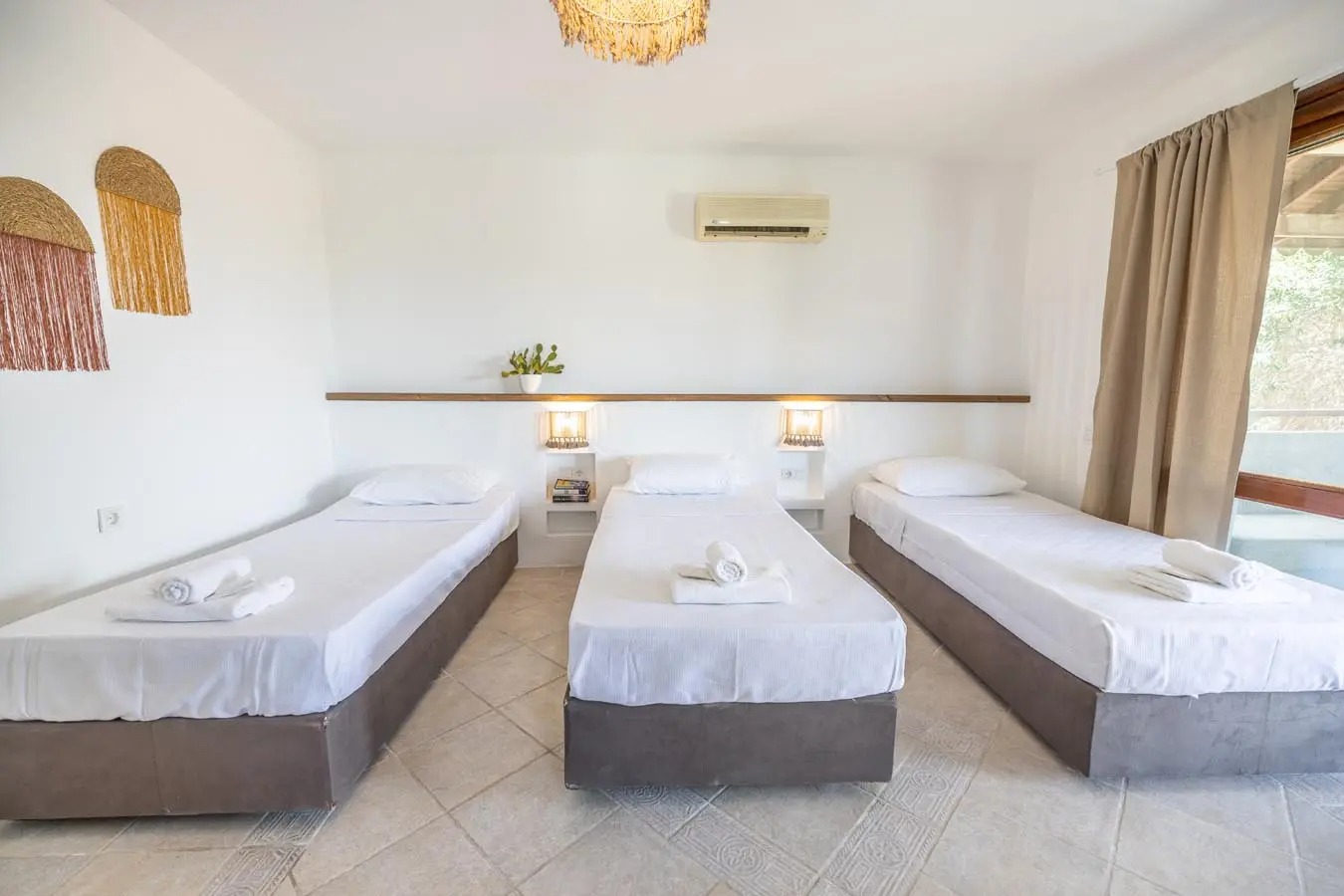 Tesiste farklı ihtiyaçlara hitap eden konforlu oda ve aile odaları bulunur. Odalar; rahat yataklar, klima, televizyon, özel banyo, ücretsiz Wi-Fi ve günlük temizlik hizmetleriyle donatılmıştır. Bahçe manzaralı alanlar, misafirlere sakin ve ferah bir konaklama imkânı sağlar.