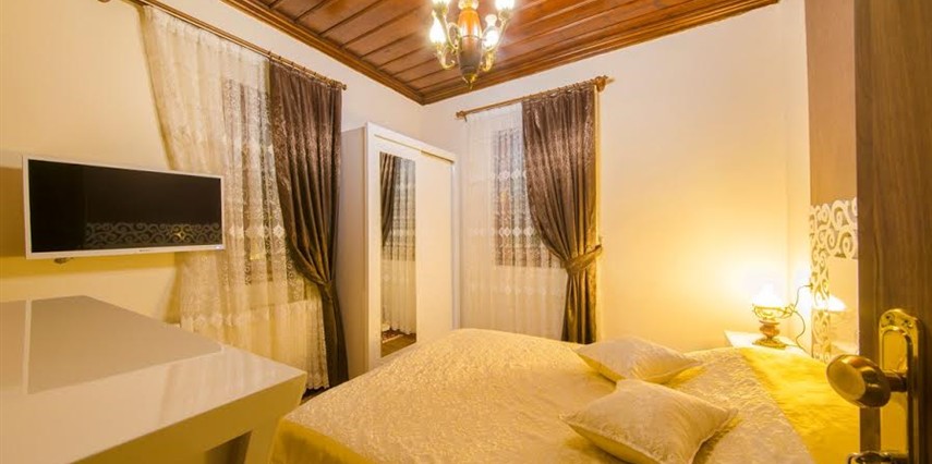 Daha Fazla GösterCinci Hamam, Demirciler Çarşısı, Hıdırlık Tepesi ve Kent Tarih Müzesi gibi gezilmesi gereken yerlere yürüyüş mesafesinde bulunan tesis, tarihin izlerini sürmek isteyen gezginler için harika bir alternatif olarak dikkat çekiyor. Ahşap detaylara sahip bir konak olan tesis, bölge mimarisine uygun dekore edilen odaları ve yeşillikler arasındaki bahçesiyle konforlu bir tatil sunuyor. Tesis restoranında geleneksel Türk kahvaltısı servis ediliyor. Bölgenin gezilecek yerlerine yakın konumuyla misafirlerine avantaj sağlayan Akçasu Konak, Osmanlı dönemini yansıtan geleneksel evleri ve büyüleyen doğası ile ziyaretçilerine sıra dışı bir deneyim yaşatan Safranbolu’da hizmet veriyor.