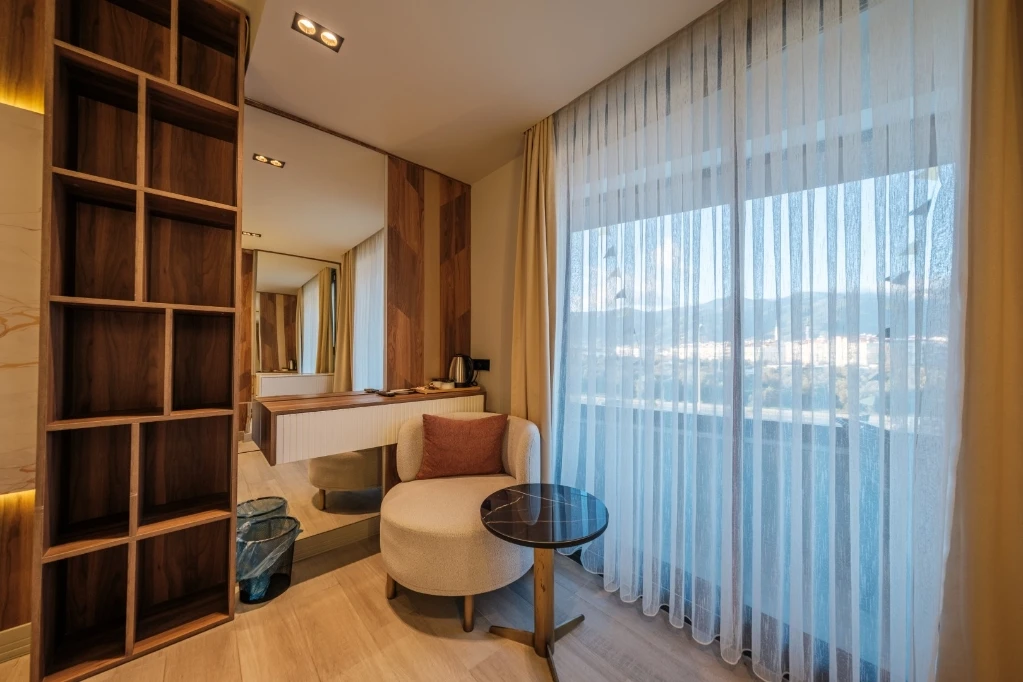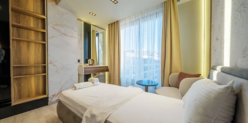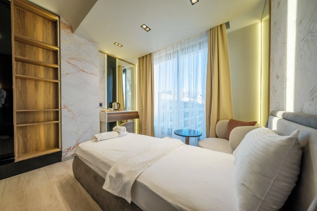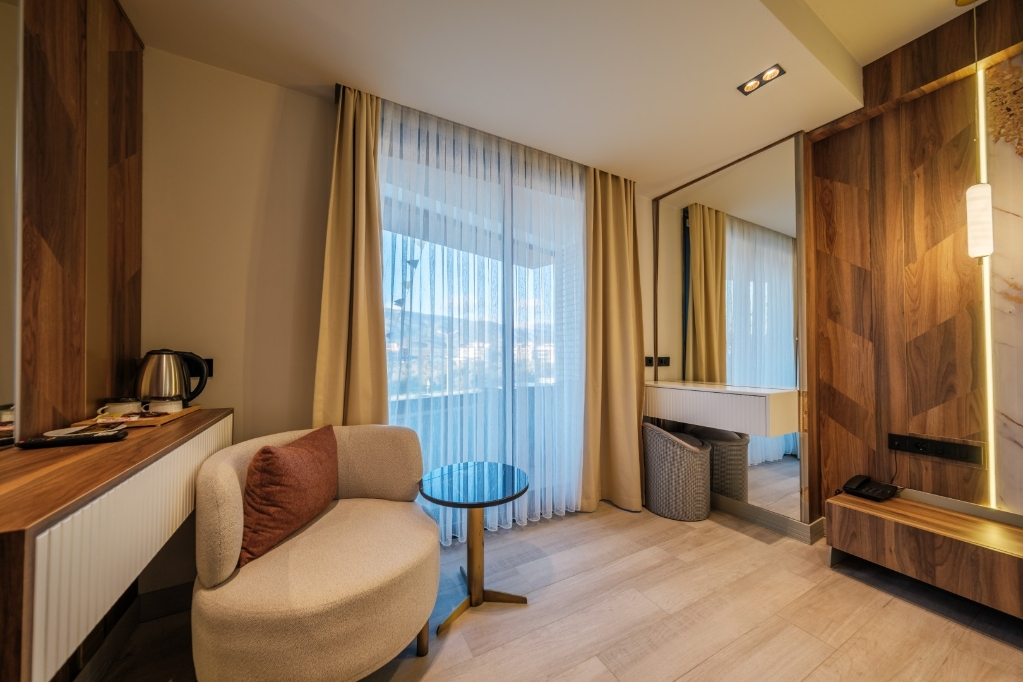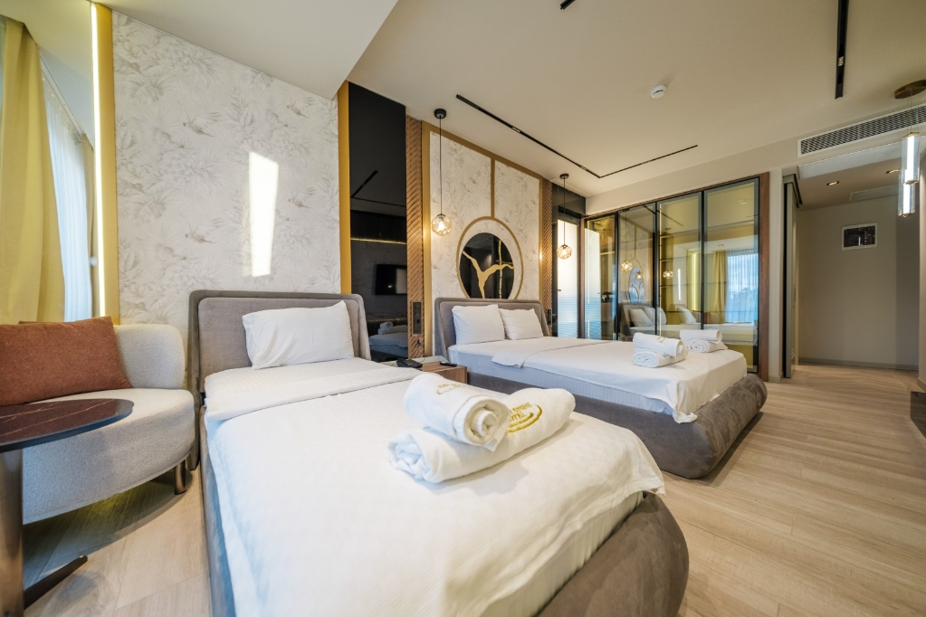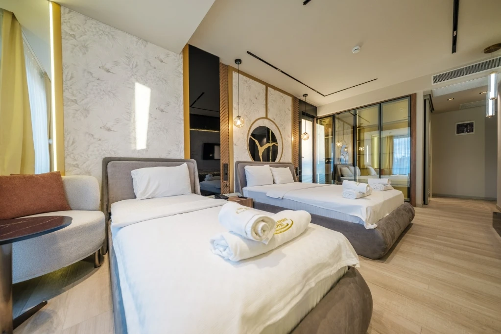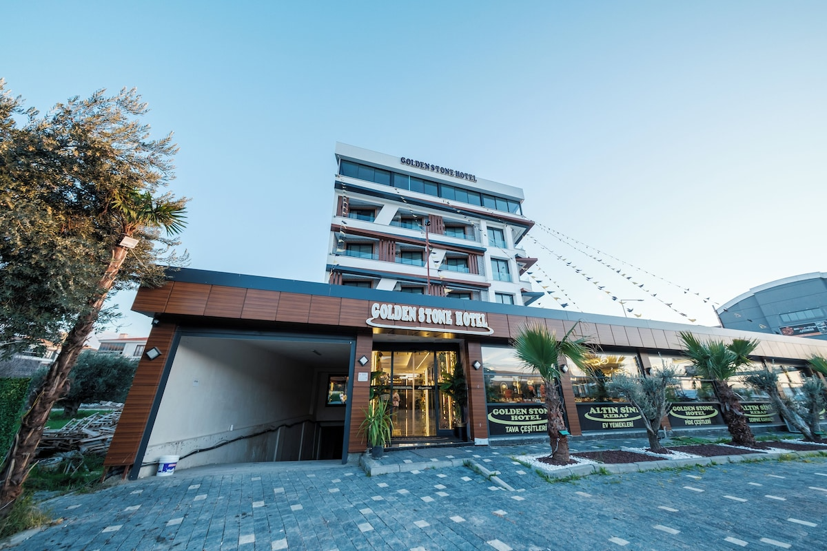 Akçay Golden Stone Hotel, Edremit Körfezi’nin incisi Akçay’da merkezi konumuyla misafirlerine konforlu ve keyifli bir konaklama deneyimi sunmaktadır; modern ve ferah tasarıma sahip odalarımızda klima, ücretsiz Wi-Fi, LED TV, özel banyo, 24 saat sıcak su ve günlük temizlik hizmeti standart olarak sunulurken, tesisimizde servis edilen zengin kahvaltı ile güne enerjik bir başlangıç yapabilirsiniz; plajlara, sahil yürüyüş yoluna, restoran ve alışveriş noktalarına kısa mesafede bulunan otelimiz, hem tatil hem iş amaçlı seyahatleriniz için ideal bir konaklama alternatifi olup misafir memnuniyetini ön planda tutan hizmet anlayışıyla sizleri ağırlamaktan mutluluk duyar.