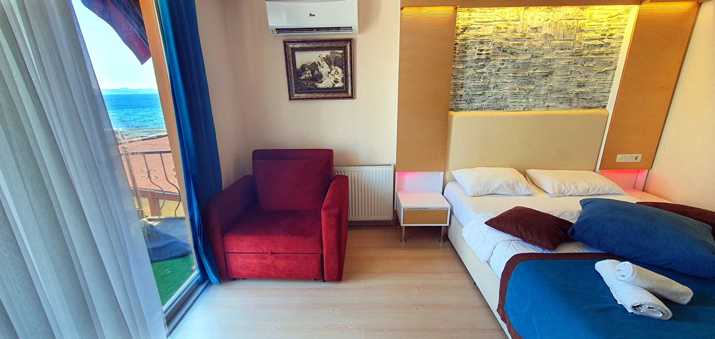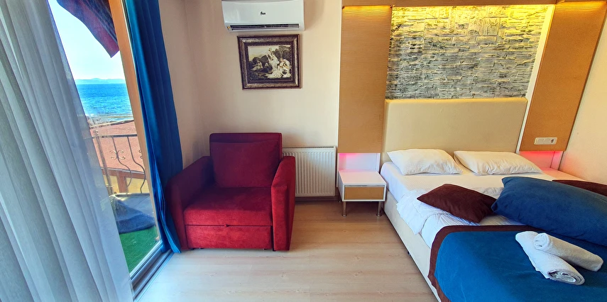 Akçay Kordon Merkezde, Denize Sıfır, Kendine ait Beach olan, Bünyesinde kapalı, açık restoranı ve barı olan nezih butik otel