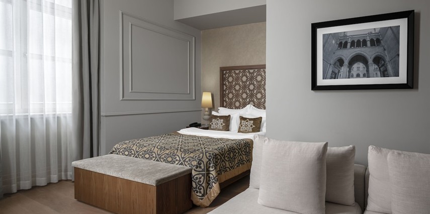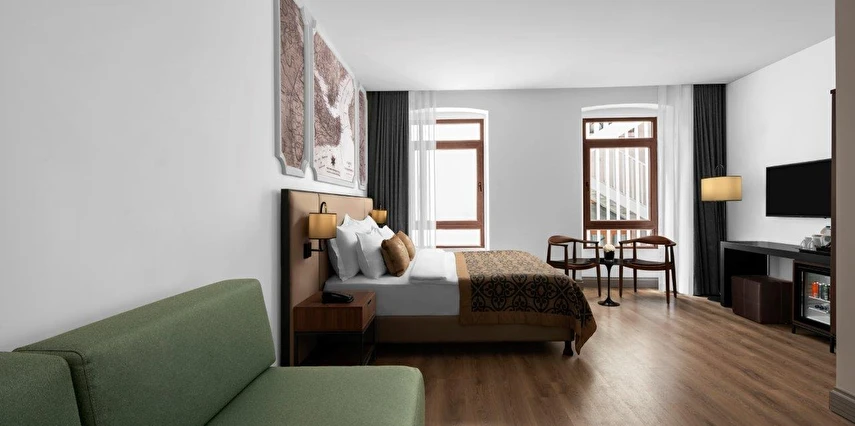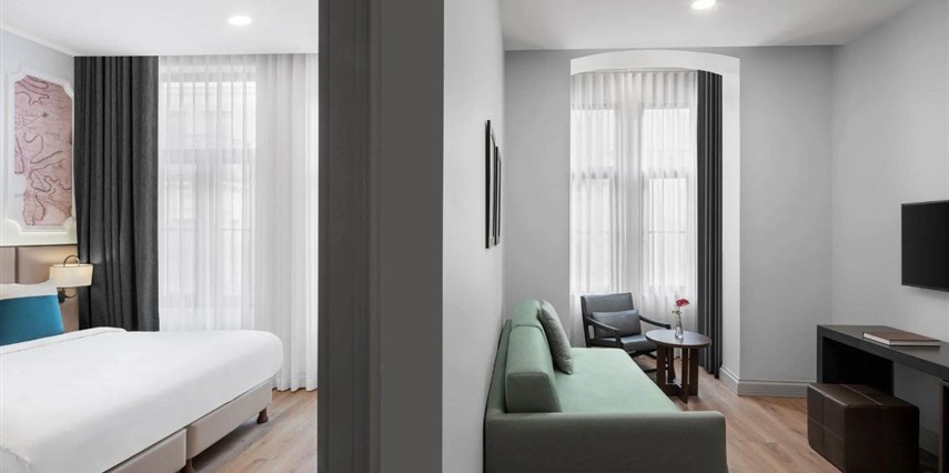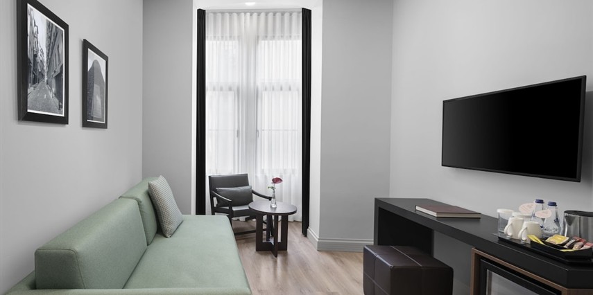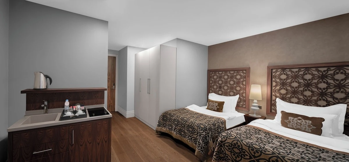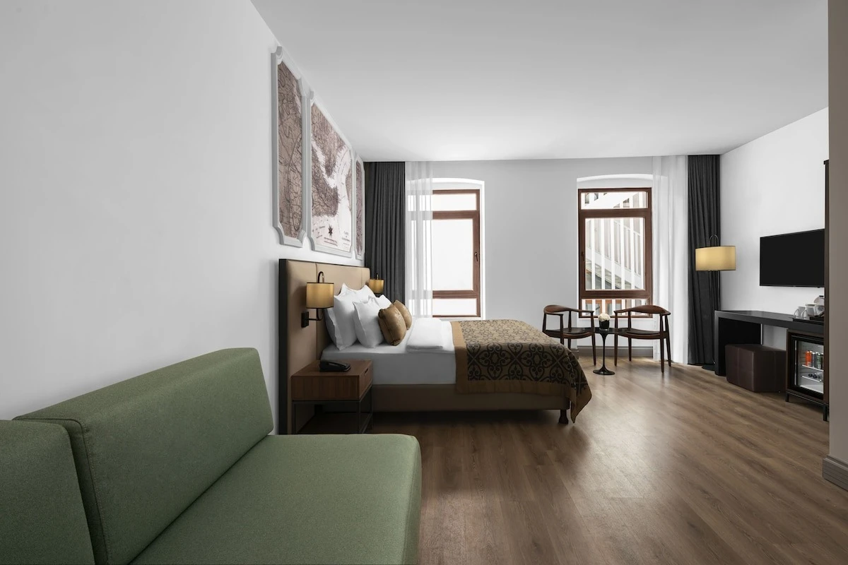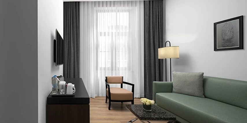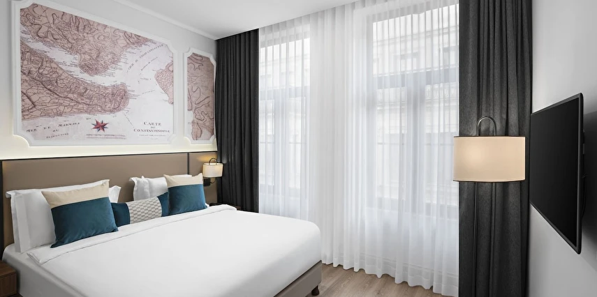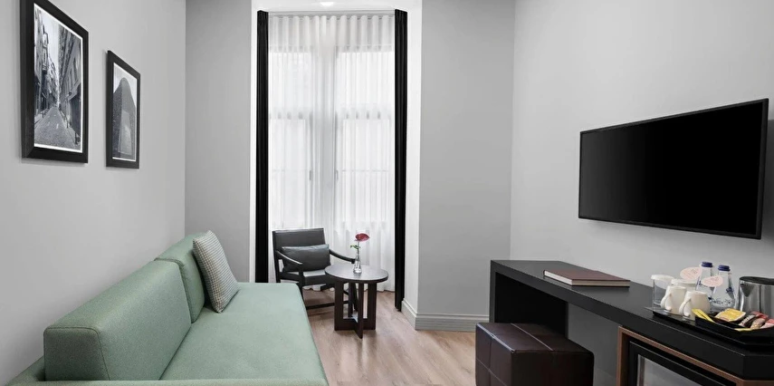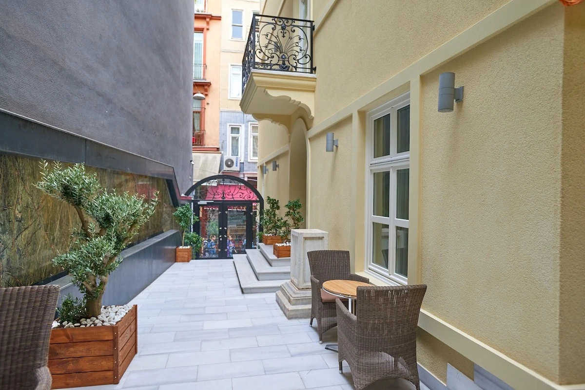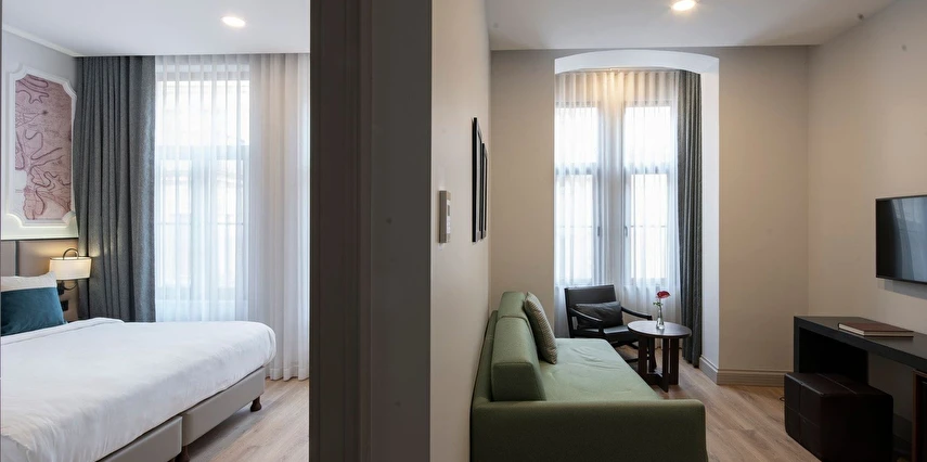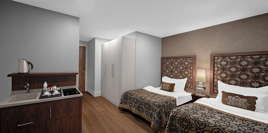 Daha Fazla Gösterİstanbul’un tarihi merkezlerinden Beyoğlu’nda bulunan Akka Suites Taksim, Tarihi Yarımada’nın nostaljik atmosferinde misafirlerine konforlu bir konaklama atmosferi sunuyor. Ev sıcaklığındaki dairelerinde şık ve sıcak bir dekorasyona sahip olan tesis hem kısa hem de uzun süreli konaklamalara hitap ediyor. İstiklal Caddesi’ne yürüme mesafesindeki tesis; ulaşım olanakları, eğlence, alışveriş ve iş merkezlerine kolay erişim imkanı sunması ile de avantajlı bir konuma sahiptir.