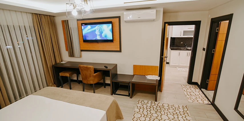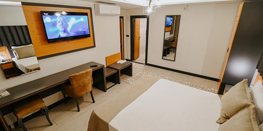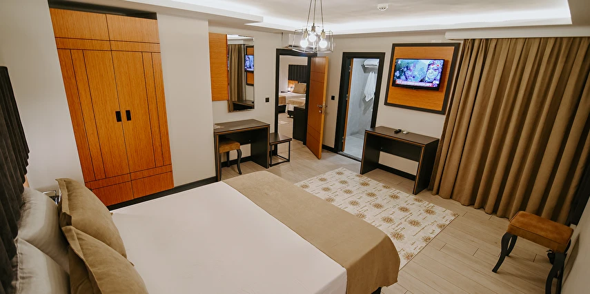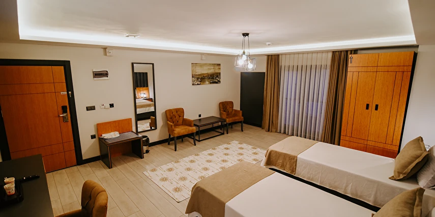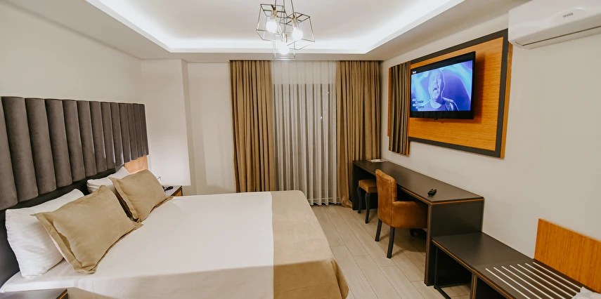 Her sabah otelde zengin ve lezzetli açık büfe kahvaltı servis edilirken; 7/24 resepsiyon hizmeti, ücretsiz otopark, aile odası seçenekleri ve çocuk dostu bir ortam tesisin diğer öne çıkan özelliklerindendir.