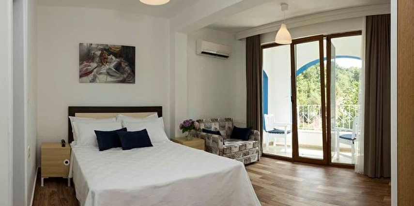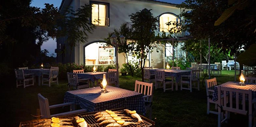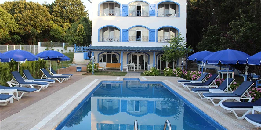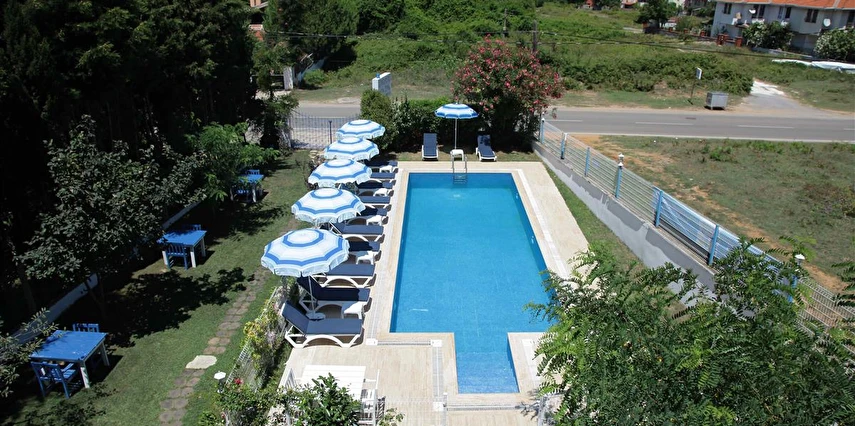 Otelin arka bahçesi ormana, ön bahçe denize bakar.