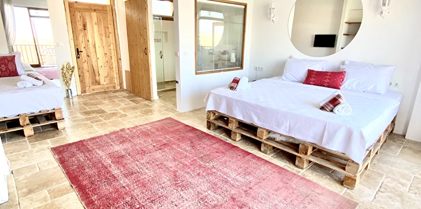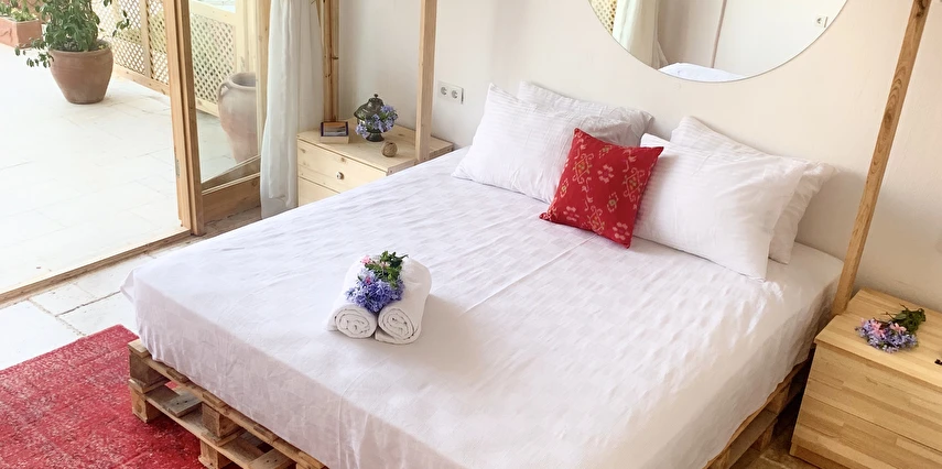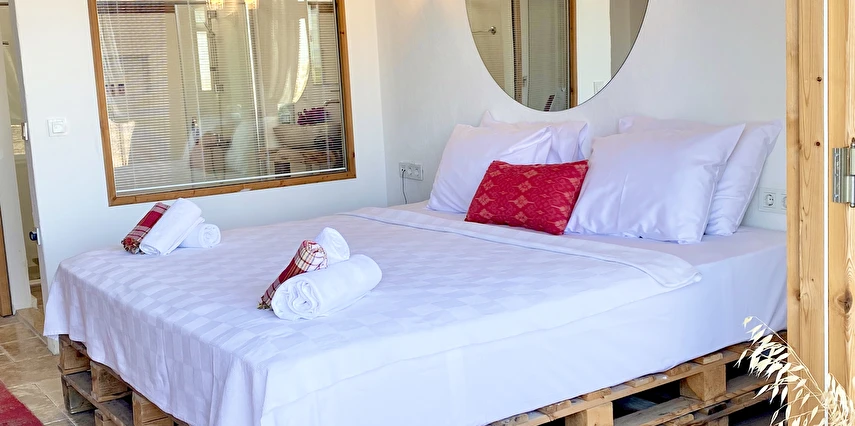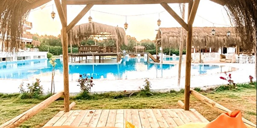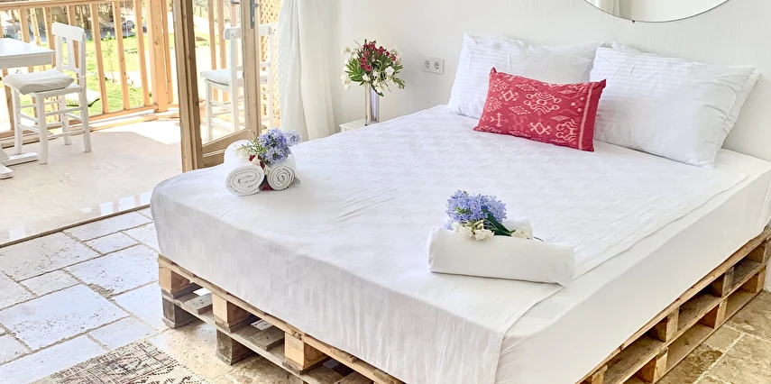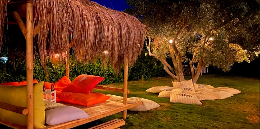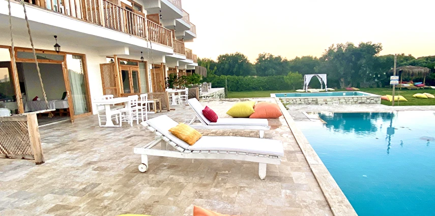 Aklınızın ortasında bağdaş kurup oturacak bir bahçe, yolunuzun düşeceği en anlamlı yer olacak. Alaçatı'nın en büyük havuzu, havuzun ortasında özel adası, ahşap localar, taş fırın yemekler, taze meyve suları, doğal malzemelerden dekore edilmiş, pencerelerinden içeri çiçek kokuları sızan odaları ve İzmir'in efsanesi Büyük Efes havuz izleme odasını bugüne uyarlayan mimarisiyle, taşla döşenmiş, 175m2 lüks VIP odası...