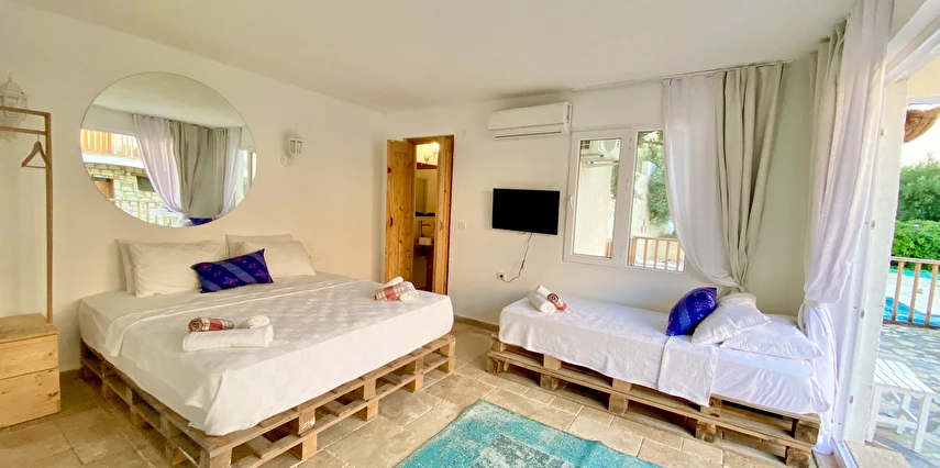 Zamanı durduran, güneşe sarılan, yağmura kardeş, doğayla dost, hayata akan bir cennet köşe… Köşeleri birleştirip bir daire olmak için kapıları on iki ay ve her yaştan misafirlere açık. Tatilde dört ayaklı aile bireylerinden ayrı kalmak istemeyen misafirlerini bahçede ağırlamaktan mutluluk duyuyor. 1989 yılından beri Kaş'ın Bucak Koyu'nda hizmet veriyoruz. Otuz yıldır hayal kurmaktan ve başkalarının hayallerini gerçekleştirmekten vazgeçmeyen giderek kalabalıklaşan bir aileyiz.