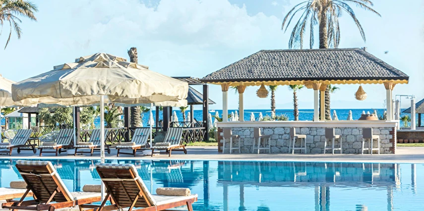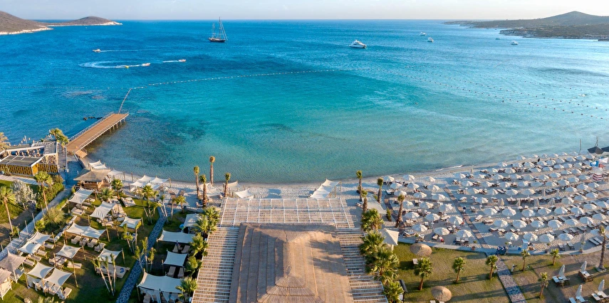 Denize sıfır konumda bulunan tesisin özel plajı bulunuyor. Plajda ve havuzda alınan tüm hizmetler ücretli. Gazebolar ücretli, ahşap şezlong ve şemsiye ücretsiz.