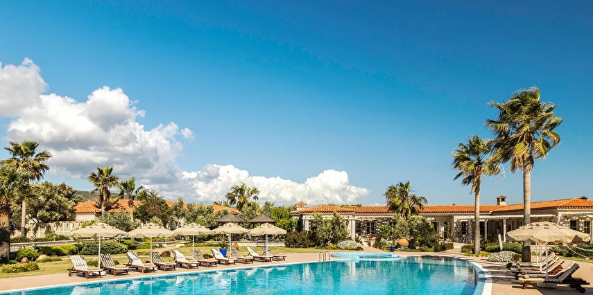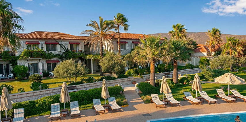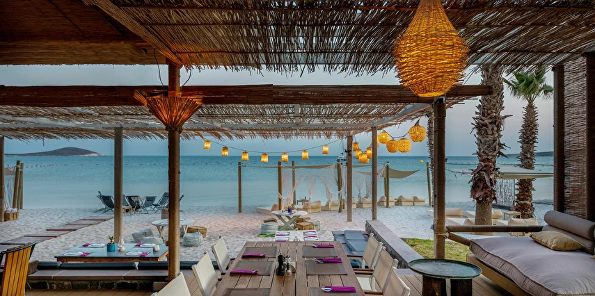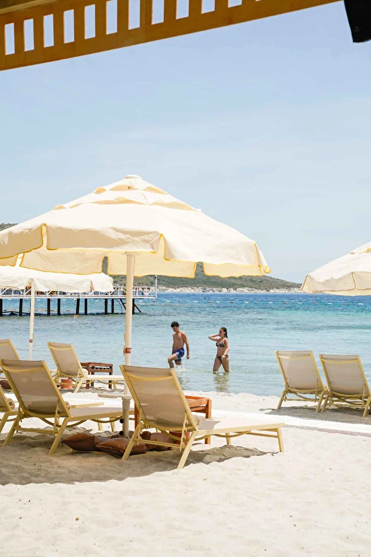 Tesis, kendisine ait özel plajı ve deniz suyu dolu yüzme havuzunun yanı sıra konforlu ahşap şezlonglarıyla misafirlerine denizin ve güneşin tadını çıkarma imkanı sunuyor.
