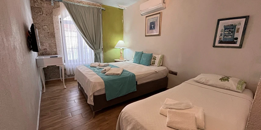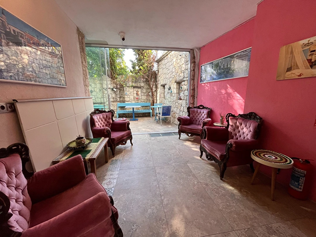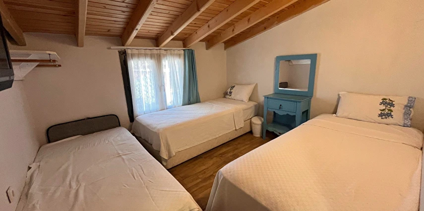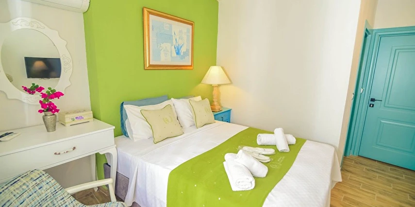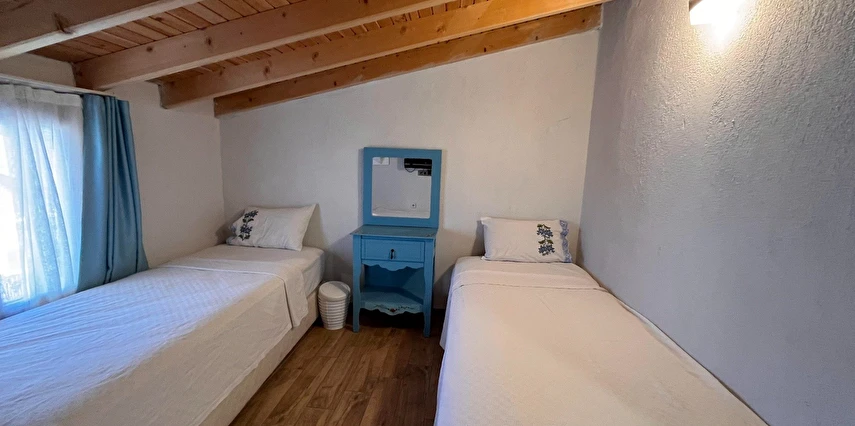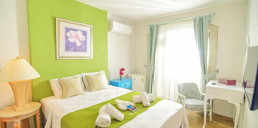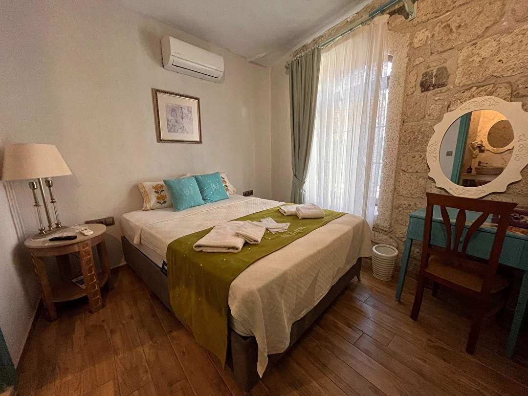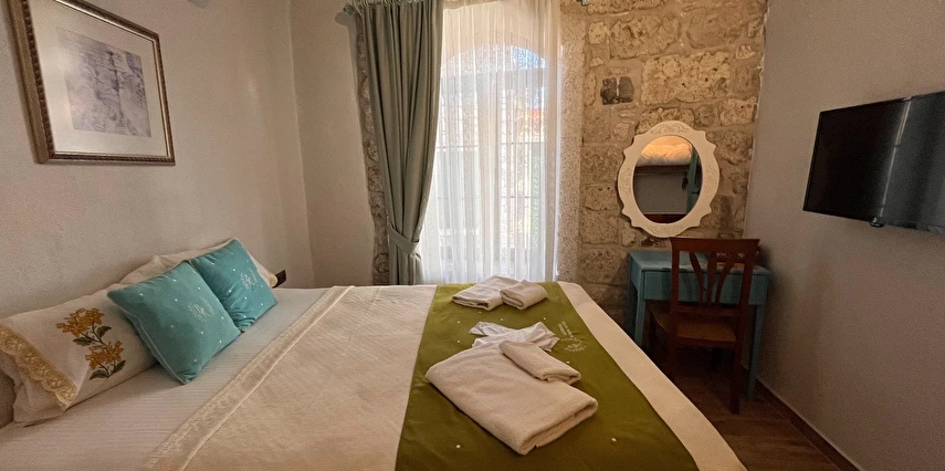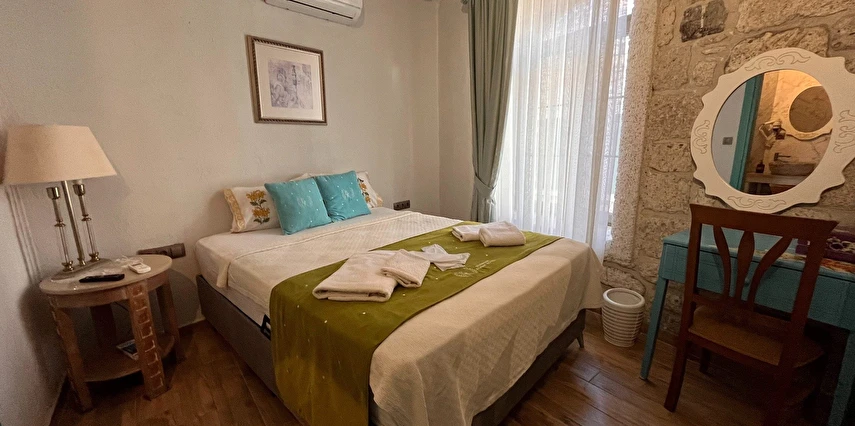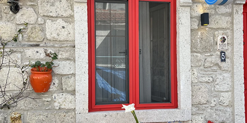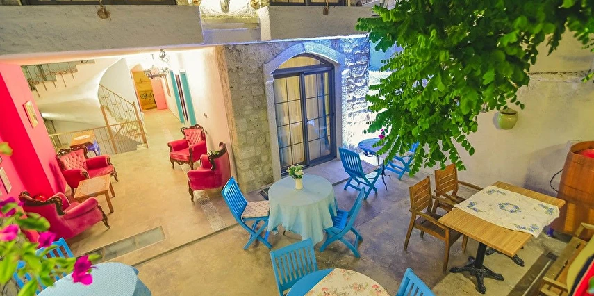 Alaçatı’nın ruhunu yansıtan tarihi taş bir yapıda hizmet veren tesis, yemyeşil bahçesi ve farklı dekorasyonlara sahip konforlu odaları ile huzurlu bir Ege tatili sunuyor. Tesiste yerel ve ev yapımı lezzetler sunan bir restoran bulunuyor. Otelimizde odalar sade döşenmiştir. Odalarda klima, TV ve özel banyo bulunmaktadır. Konuklar, kapalı mekanda zengin kahvaltının keyfini sürebilir veya masa, sandalye ve rahat banklar ile donatılmış geniş terasta açık havanın tadını çıkarabilirler.
