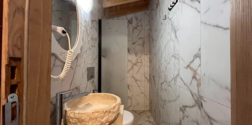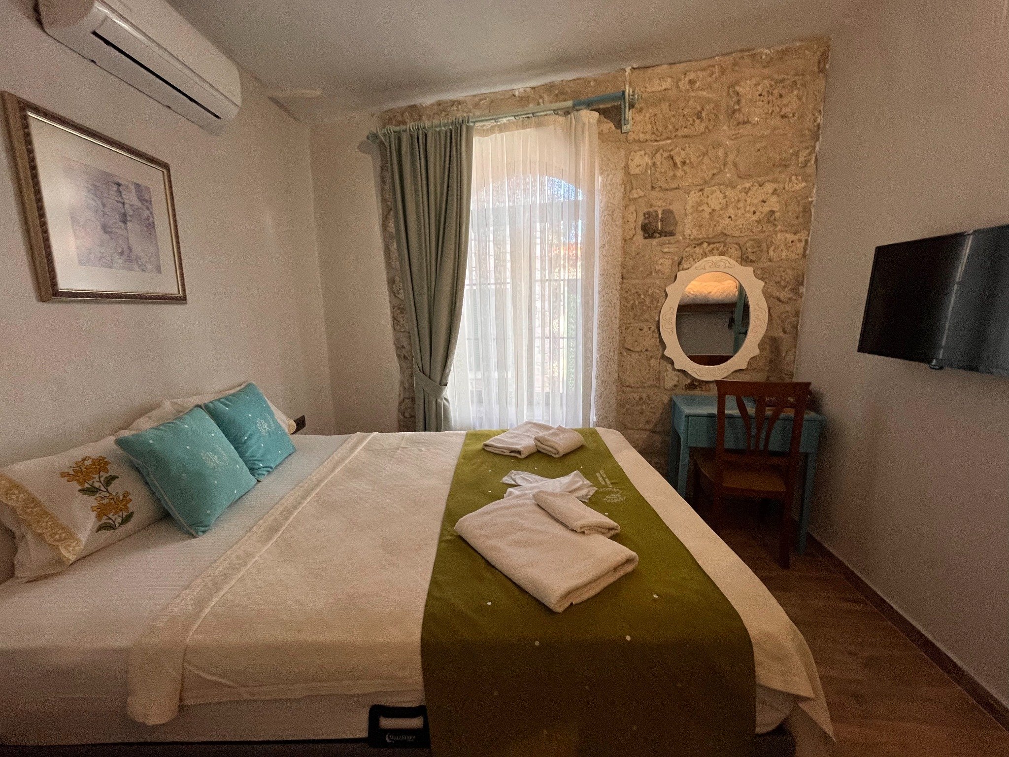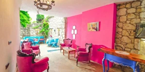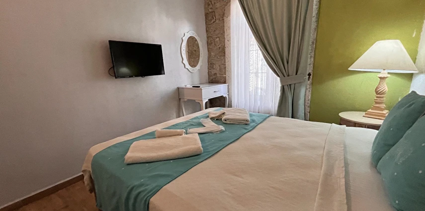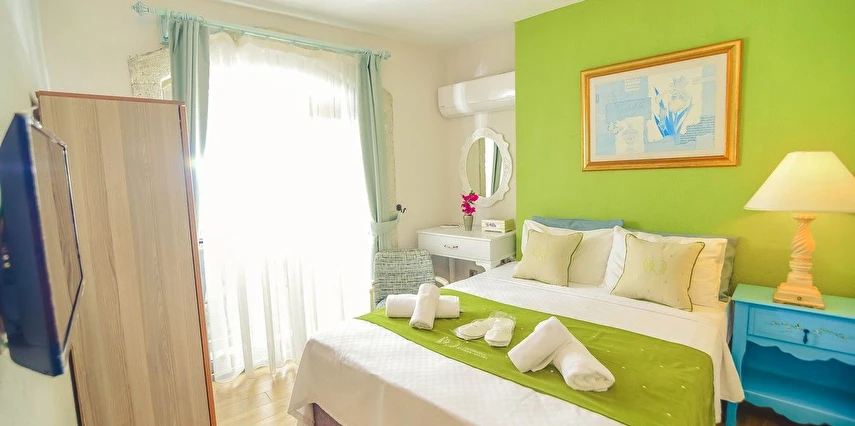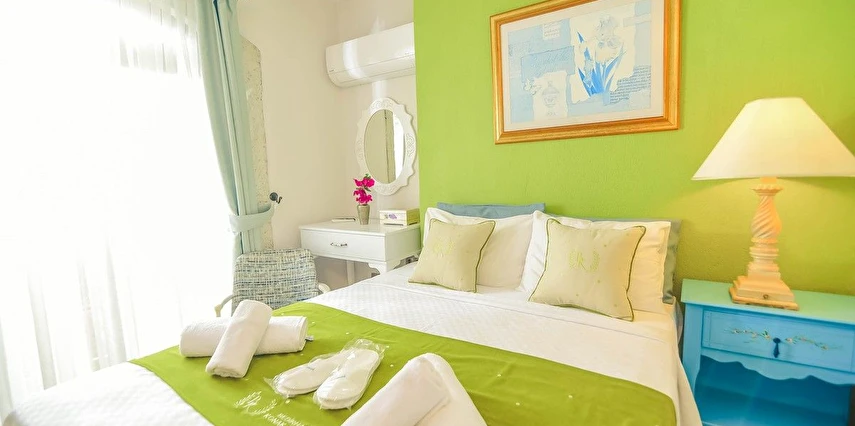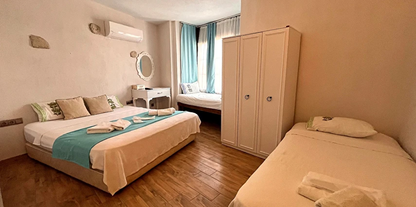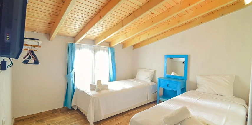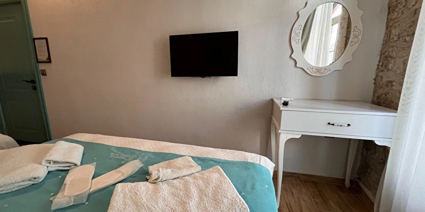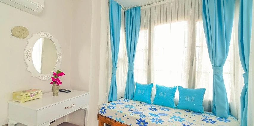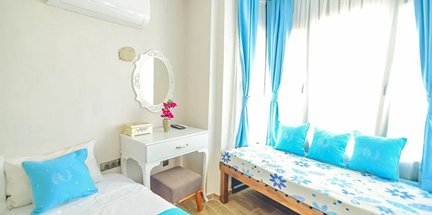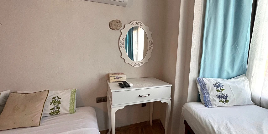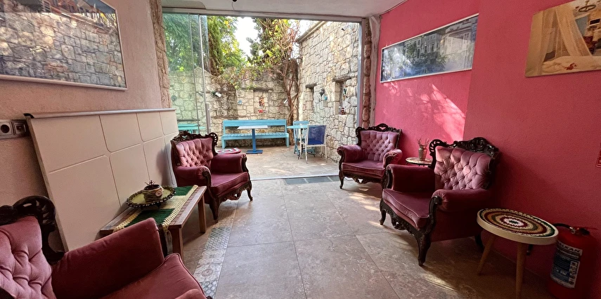 Alaçatı’nın ruhunu yansıtan tarihi taş bir yapıda hizmet veren tesis, yemyeşil bahçesi ve farklı dekorasyonlara sahip konforlu odaları ile huzurlu bir Ege tatili sunuyor. Tesiste yerel ve ev yapımı lezzetler sunan bir restoran bulunuyor. Otelimizde odalar sade döşenmiştir. Odalarda klima, TV ve özel banyo bulunmaktadır. Konuklar, kapalı mekanda zengin kahvaltının keyfini sürebilir veya masa, sandalye ve rahat banklar ile donatılmış geniş terasta açık havanın tadını çıkarabilirler.