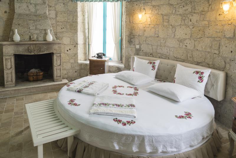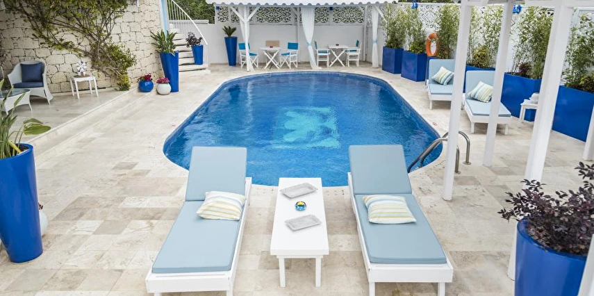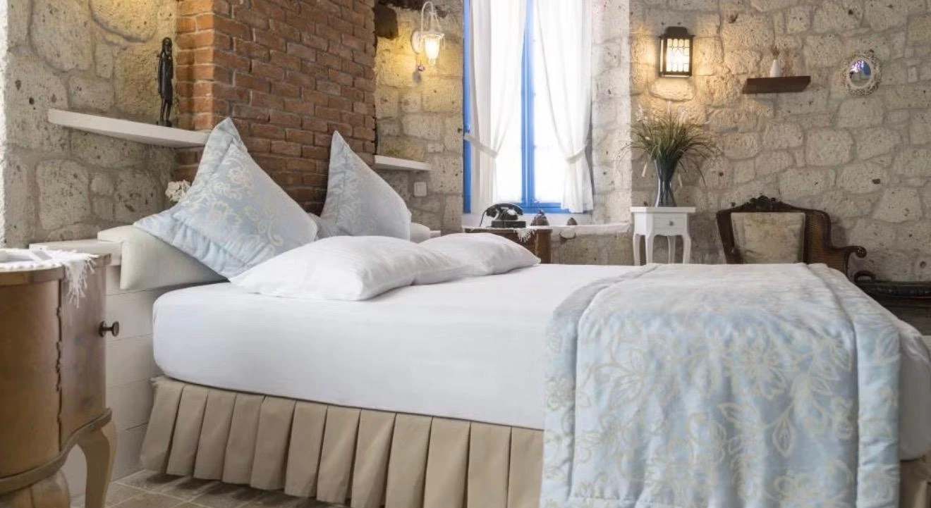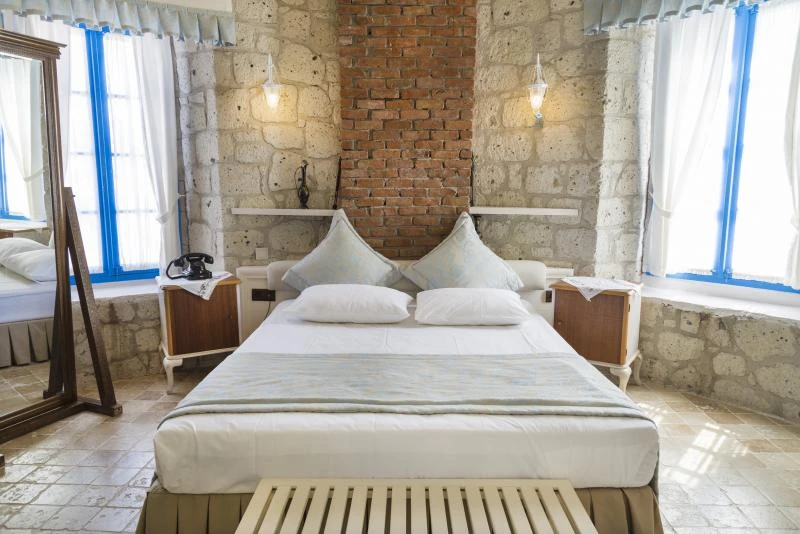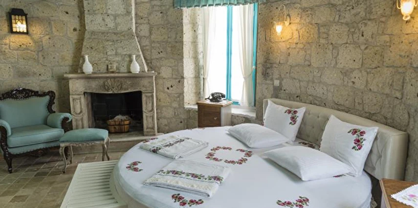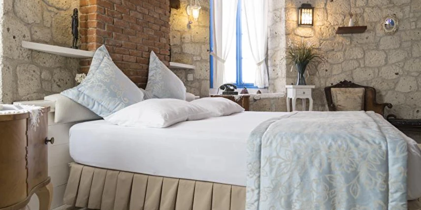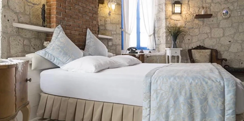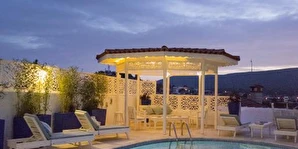 Rengarenk çiçekleri , taşlarla sarmaş dolaş olmuş begonvillerle bezenmiş bahçesinden geçip, Yunan adalarındaki mimariyi andıran merdivenlerinden çıktığınızda, asude ve ılık rüzgarların estiği, Alaçatı’yı yukarıdan seyredebileceğiniz terasını görünce sakın şaşırmayın. “Gemlik’ e doğru/Denizi göreceksin/Sakın şaşırma” diyen Orhan Veli ustanın dizelerini anımsatırcasına… Terasında güneşlenebilir, alkollü alkolsüz içkilerinizi gün boyu yudumlayabilir ve gündüzden vereceğiniz sipariş ile keyifli bir akşam yemeği yiyebilirisiniz. Her bir kulede bulunan altlı üstlü ikişer tane olmak üzere toplam sekiz deluxe odası ile hizmet veriyor otel.