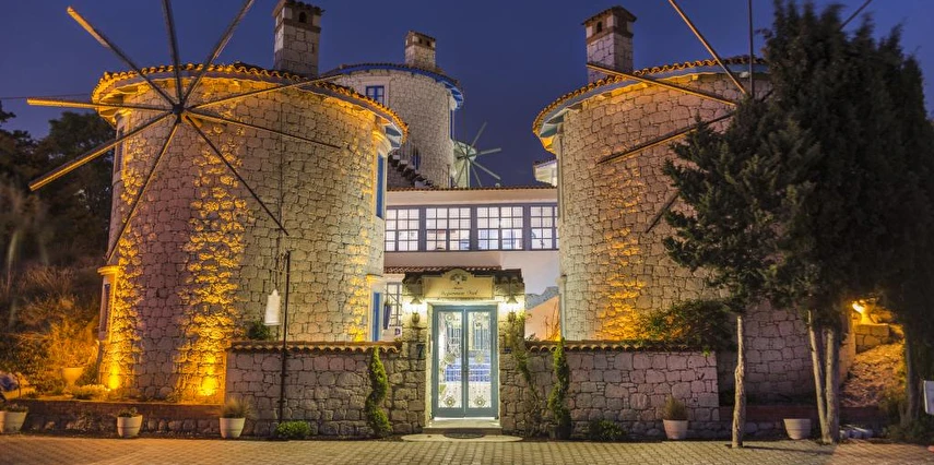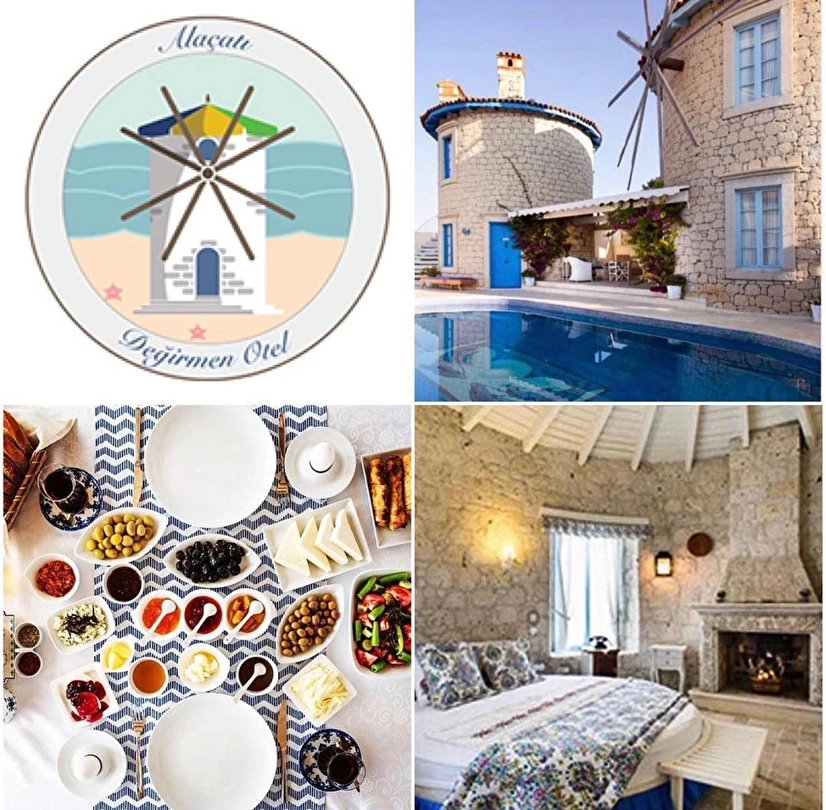 Yel değirmenlerinden esinlenilmiş mimarisiyle dikkat çeken Alaçatı Değirmen Otel, yemyeşil bahçesi, açık havuzu ve birbirinden romantik dekorasyonlarıyla göz dolduran odalarıyla öne çıkıyor. Tesiste sabahları enfes bir Ege kahvaltısı servis ediliyor.